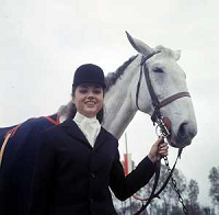 NELLA FOTO GIGLIOLA CINQUETTI A SAN SIRO FUORI DALL'IPPODROMO CON IL CAVALLO NELL'ANNO 1966