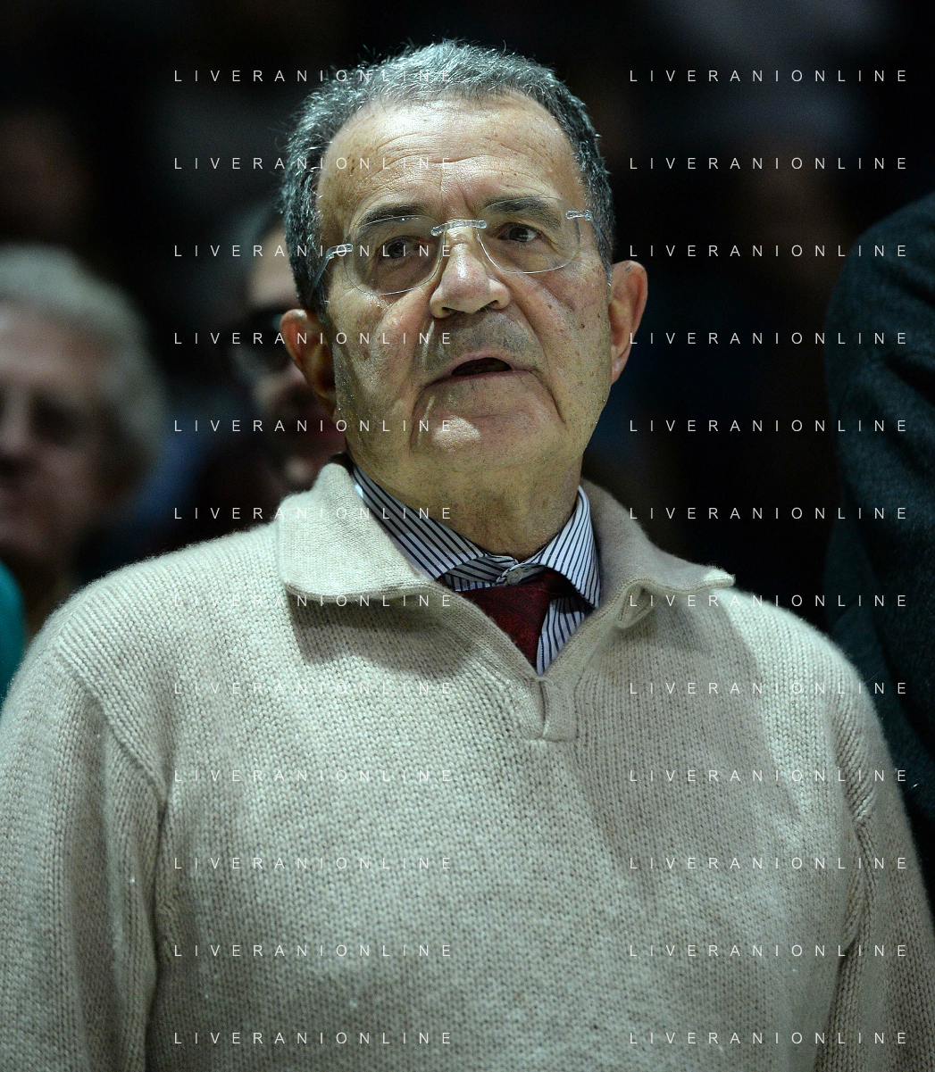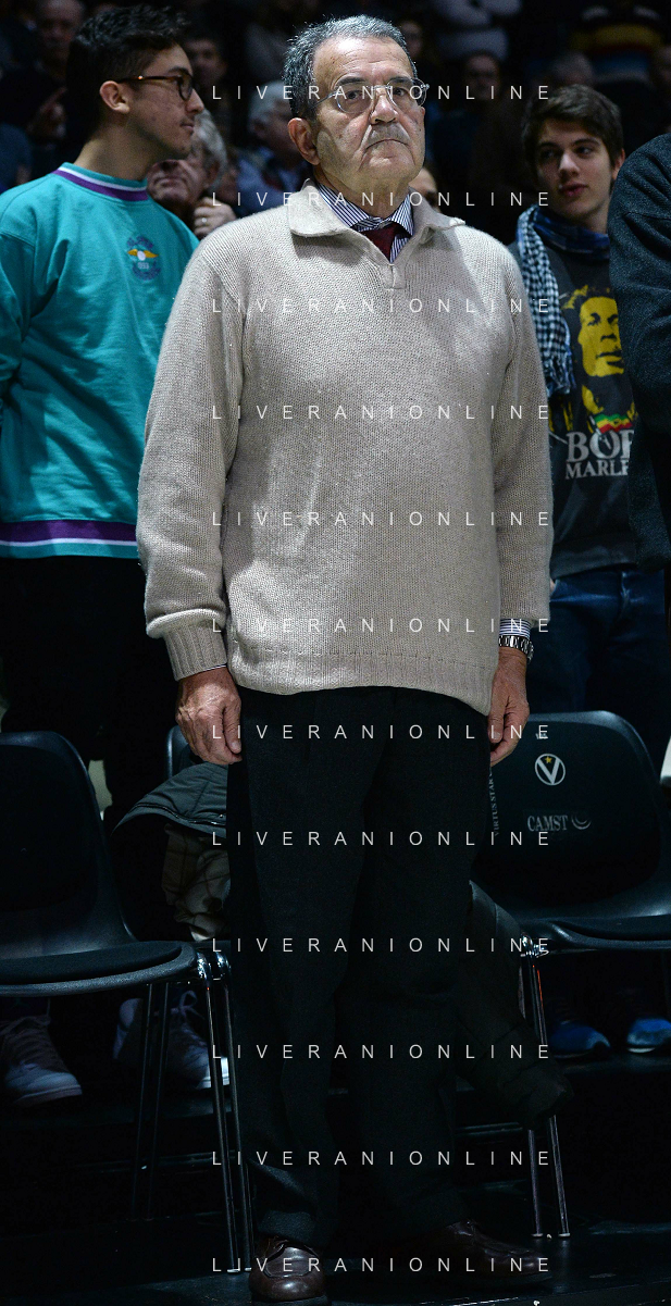 Beko Lega Basket Serie A 2014/2015 13 Giornata Bologna - 29.12.2014 Granarolo Bologna-EA7 Emporio Armani Milano Nella Foto:romano prodi durante l'inno nazionale /Ph.Vitez-Ag. Aldo Liverani