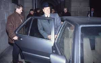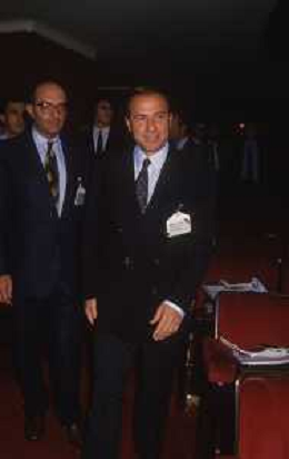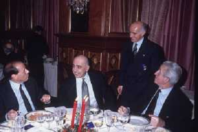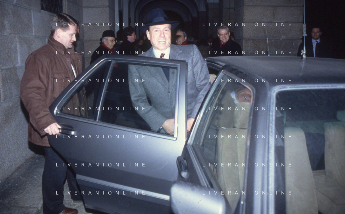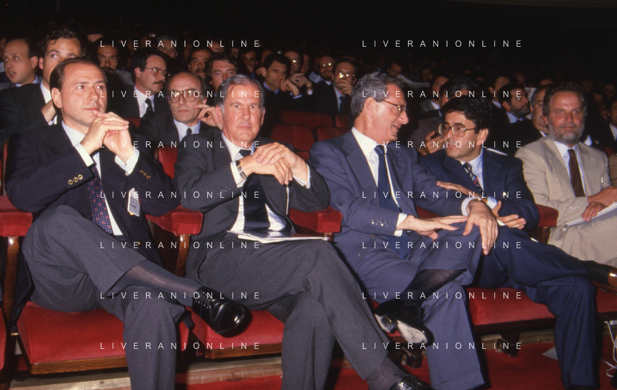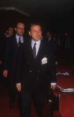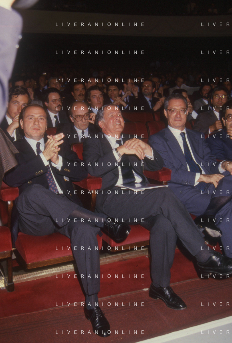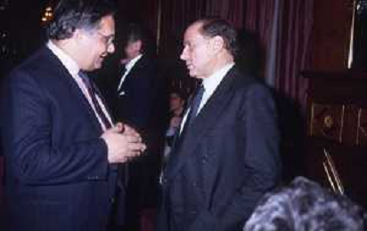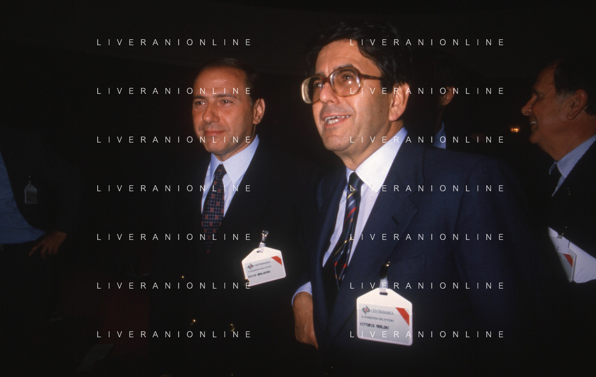DIAP-RETROSPETTIVA SILVIO BERLUSCONI IMPRENDITORE E POLITICO NELLA FOTO SILVIO BERLUSCONI NELL'ANNO 1988-1989 CON VITTORIO MERLONI AG ALDO LIVERANI SAS