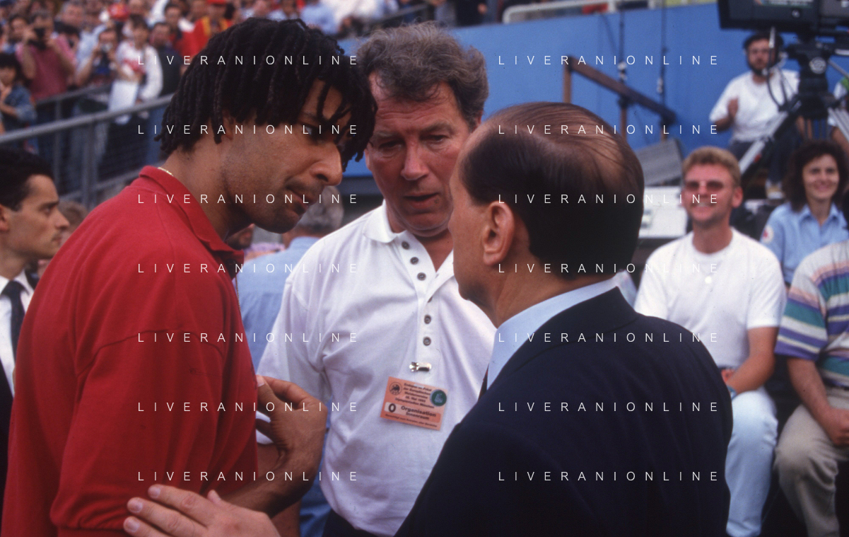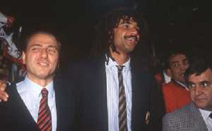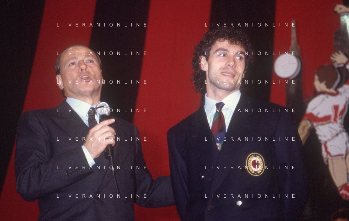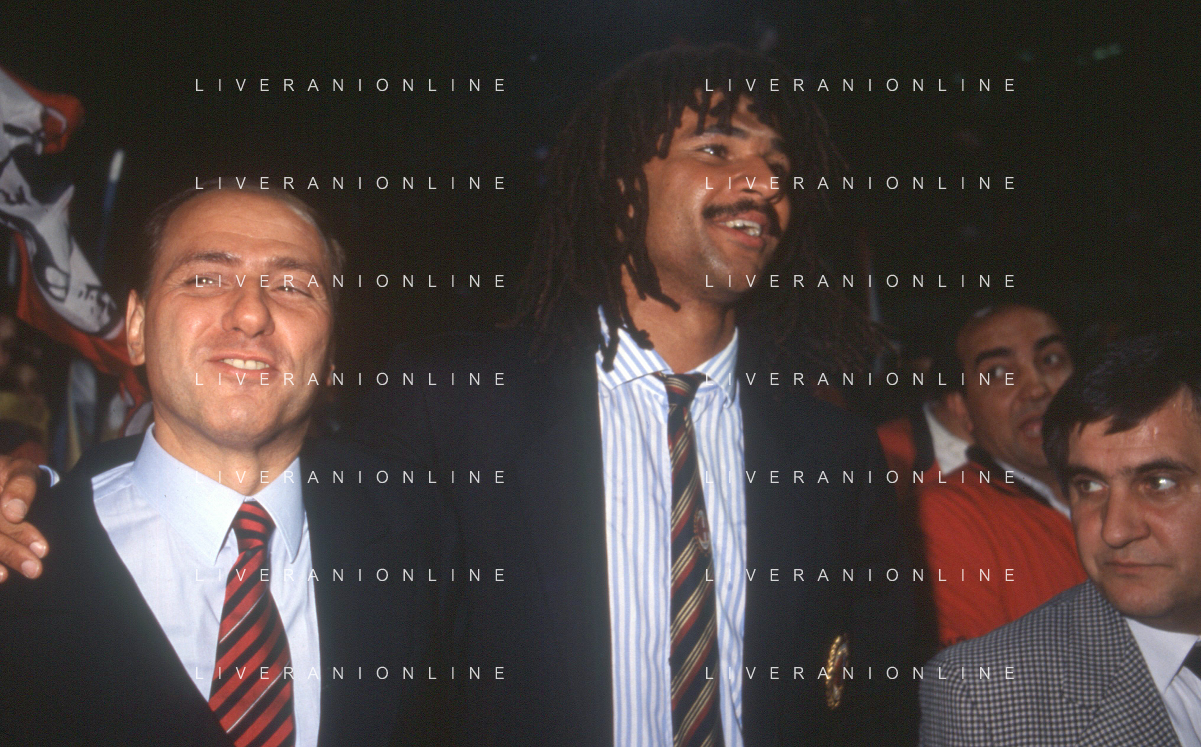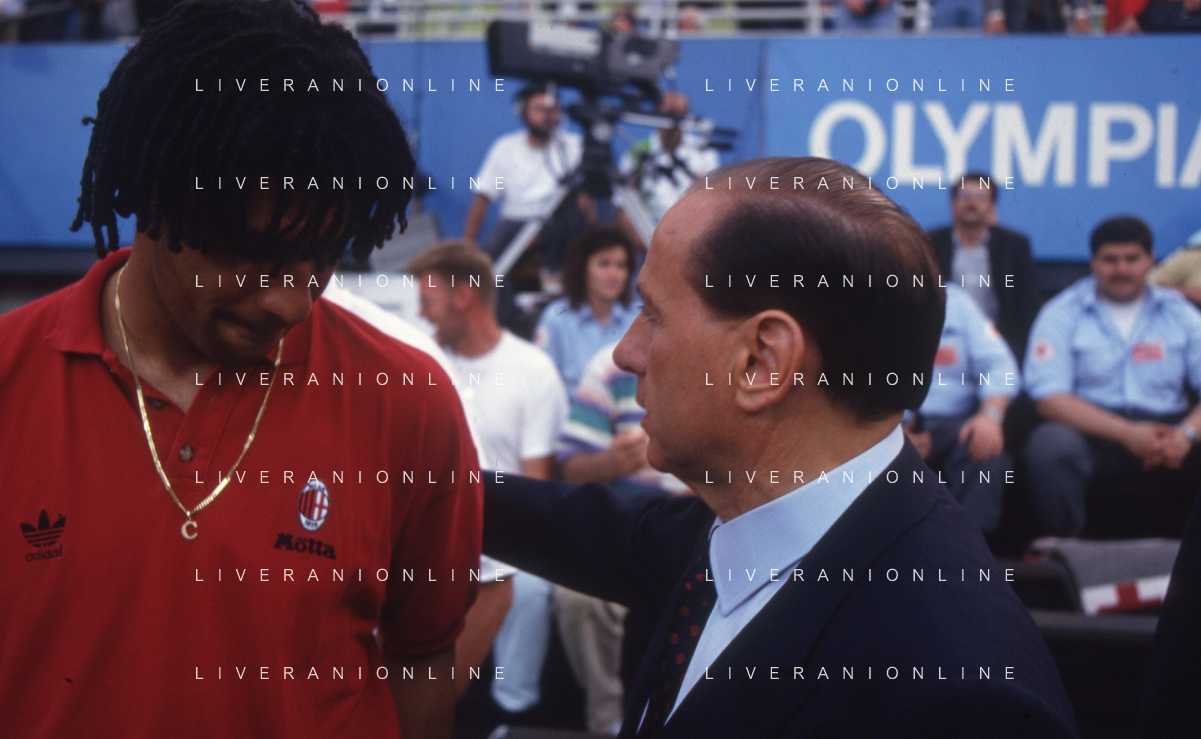 DIAP-RETROSPETTIVA SILVIO BERLUSCONI PRESIDENTE DEL MILAN CALCIO E POLITICO NELLA FOTO SILVIO BERLUSCONI NELL'ANNO 1992-1993 CON RUUD GULLIT AG ALDO LIVERANI SAS