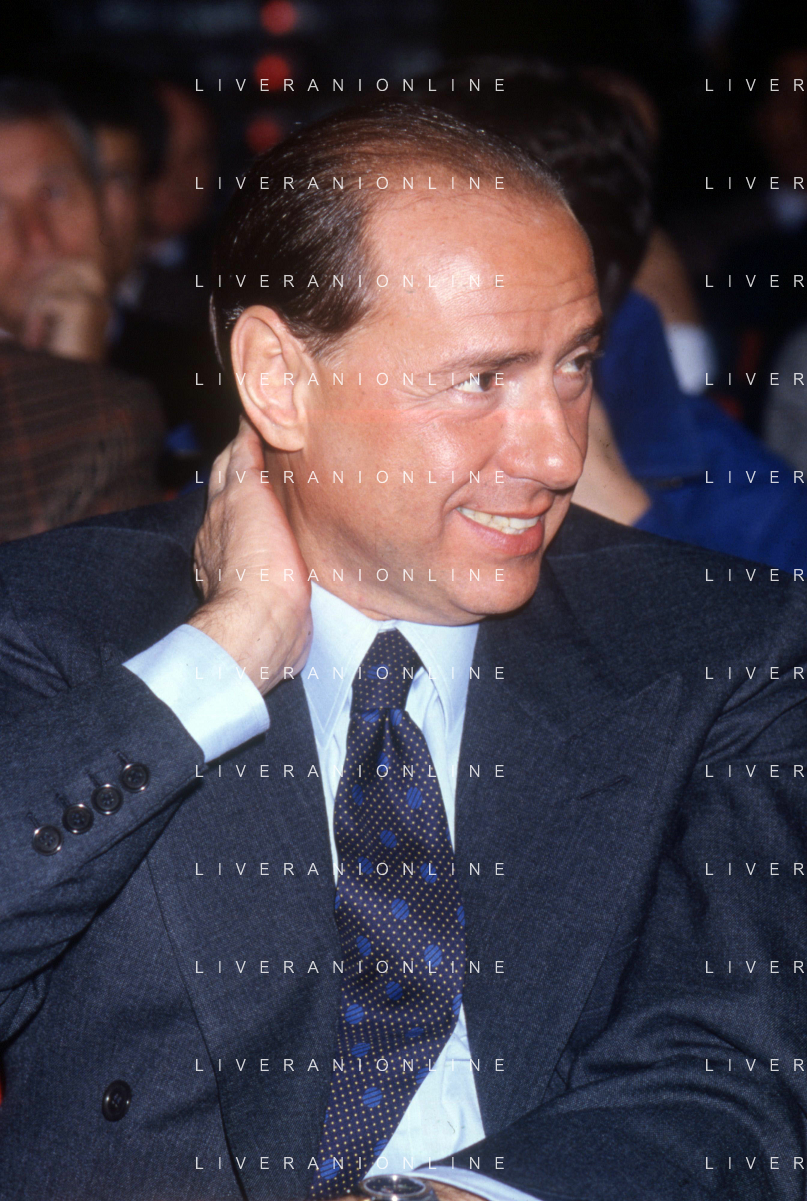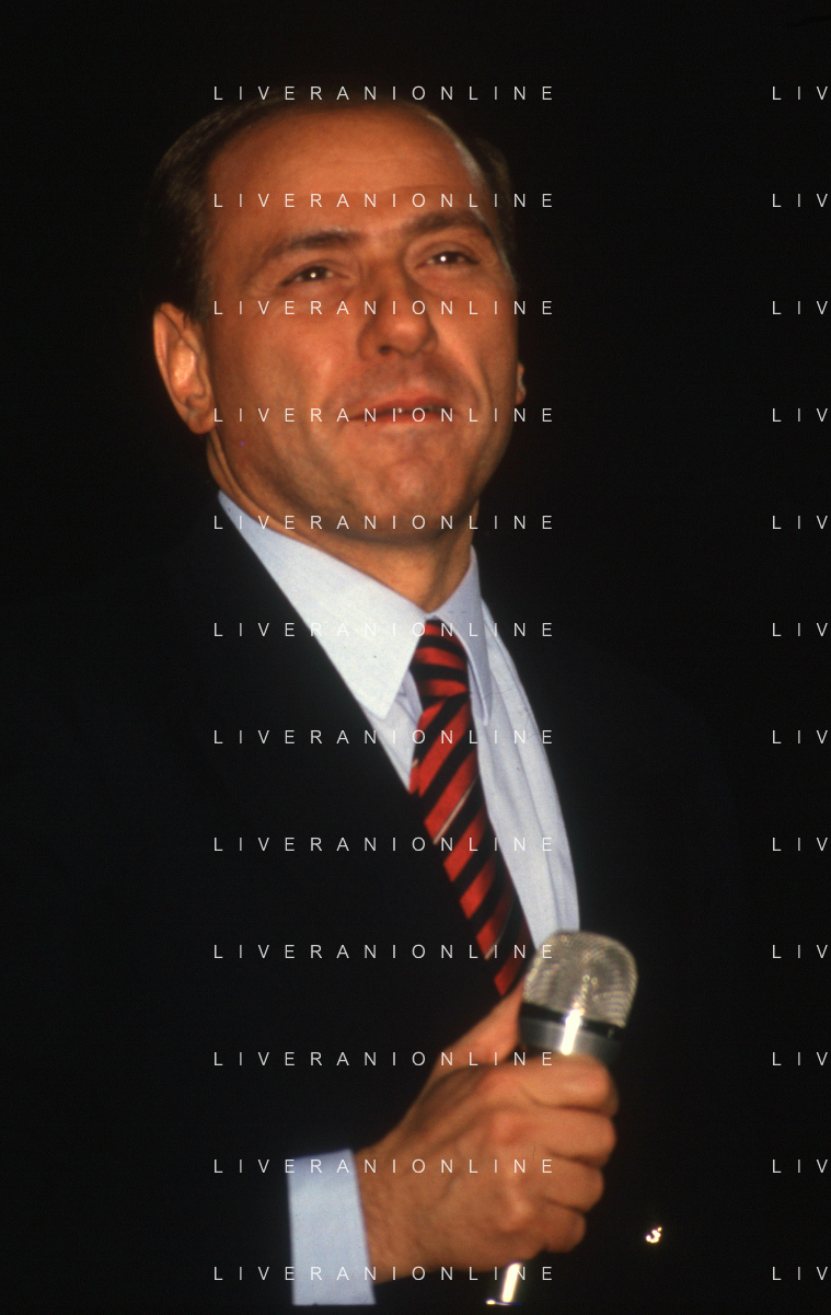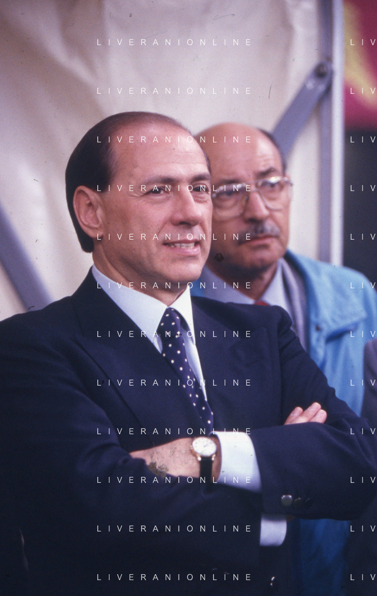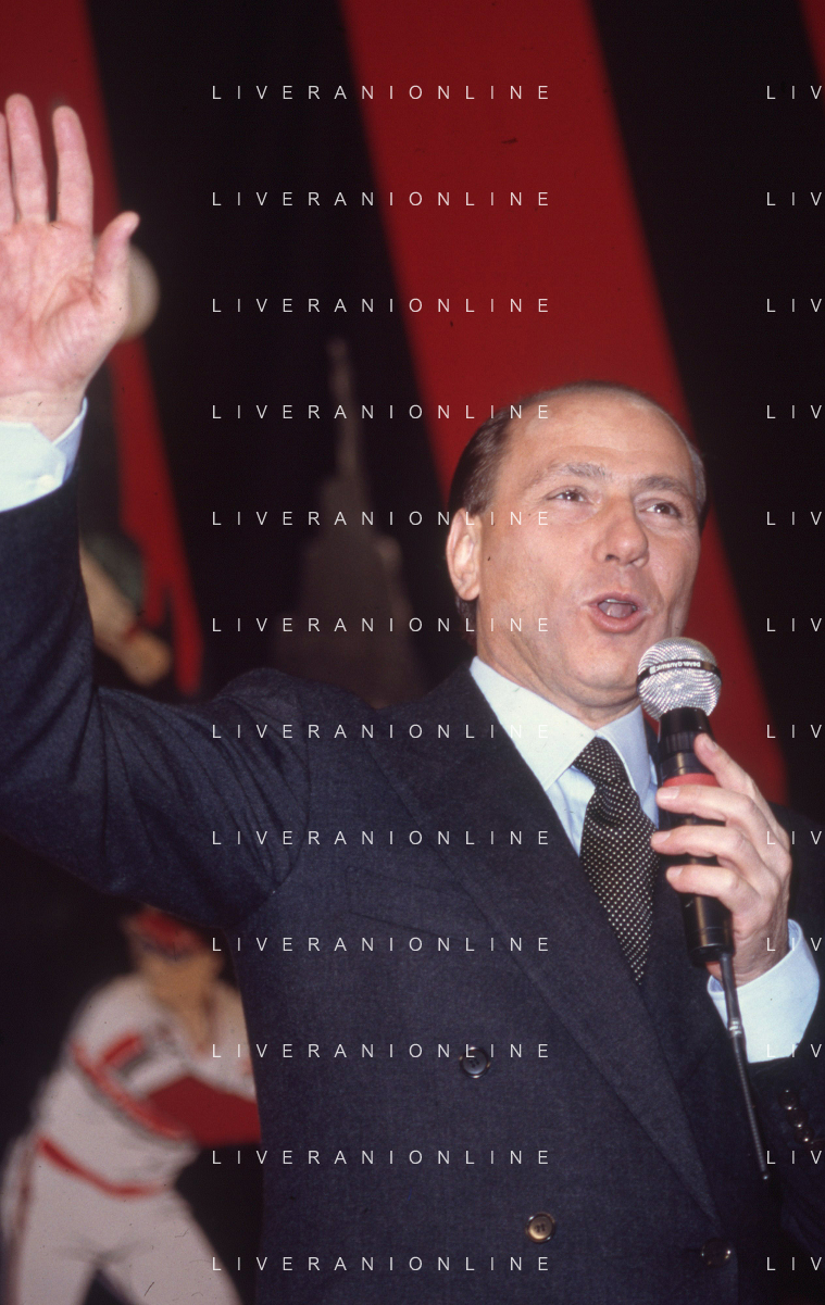 DIAP-RETROSPETTIVA SILVIO BERLUSCONI PRESIDENTE DEL MILAN CALCIO E POLITICO NELLA FOTO SILVIO BERLUSCONI NELL'ANNO 1992-1993 A MILANO AG ALDO LIVERANI SAS