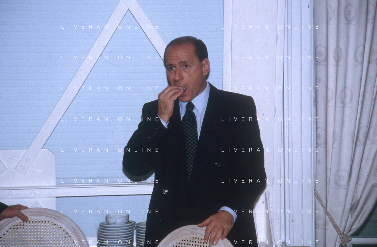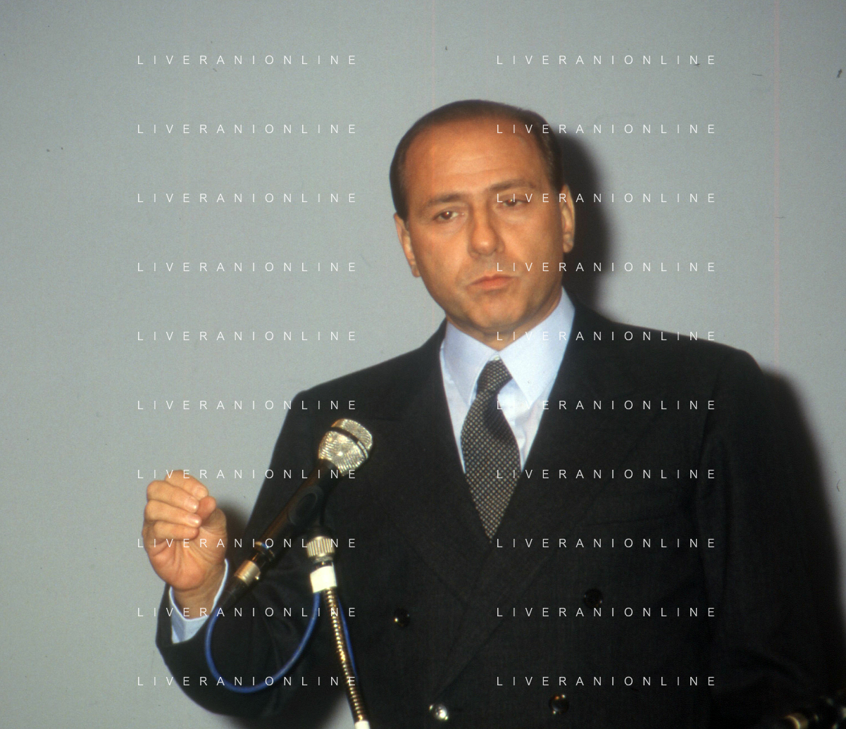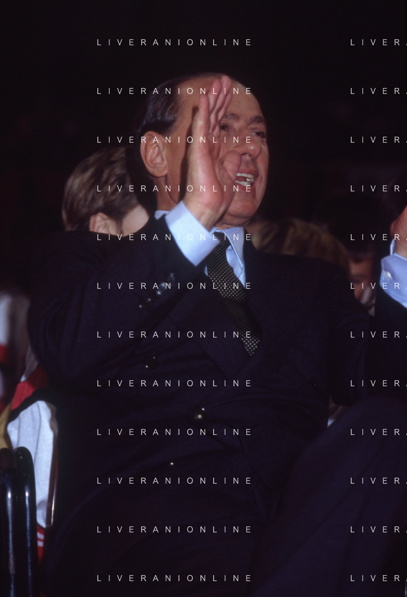 DIAP-RETROSPETTIVA SILVIO BERLUSCONI PRESIDENTE DEL MILAN CALCIO E POLITICO NELLA FOTO SILVIO BERLUSCONI NELL'ANNO 1992-1993 A MILANO AG ALDO LIVERANI SAS