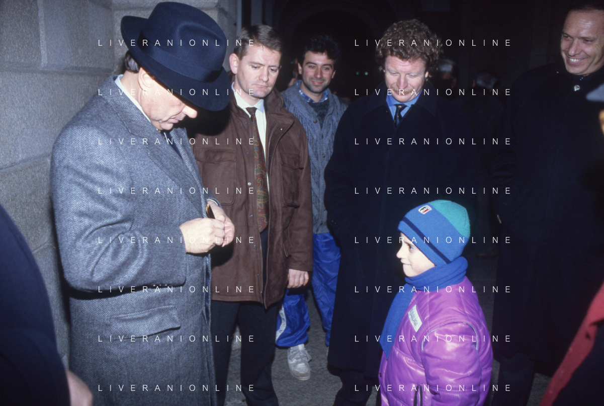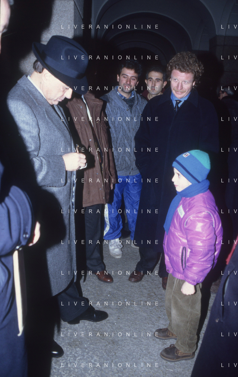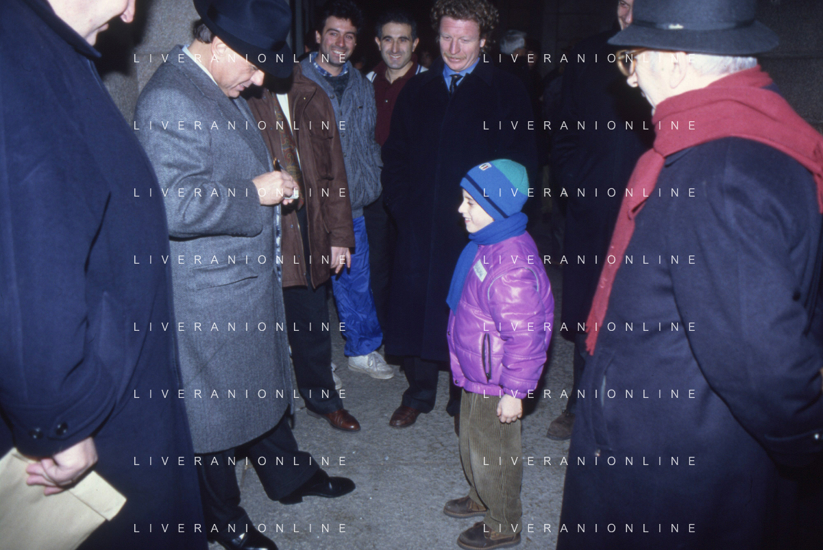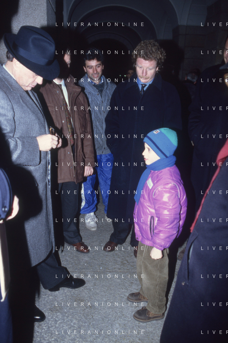 DIAP-RETROSPETTIVA SILVIO BERLUSCONI PRESIDENTE DEL MILAN CALCIO E POLITICO NELLA FOTO SILVIO BERLUSCONI NELL'ANNO 1992-1993 CON IL FIGLIO PIERSILVIO AG ALDO LIVERANI SAS