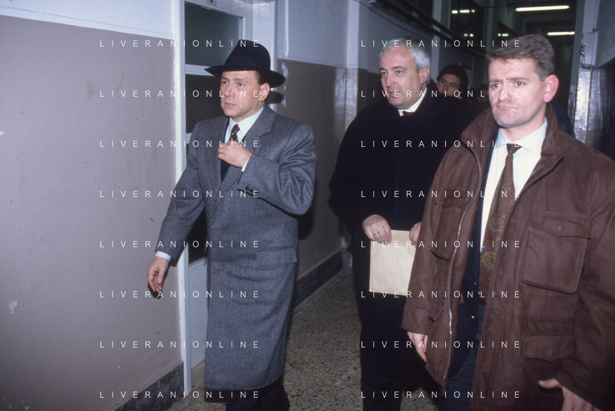 DIAP-RETROSPETTIVA SILVIO BERLUSCONI PRESIDENTE DEL MILAN CALCIO E POLITICO NELLA FOTO SILVIO BERLUSCONI NELL'ANNO 1992-1993 A MILANO CON FILIPPO GALLI AG ALDO LIVERANI SAS