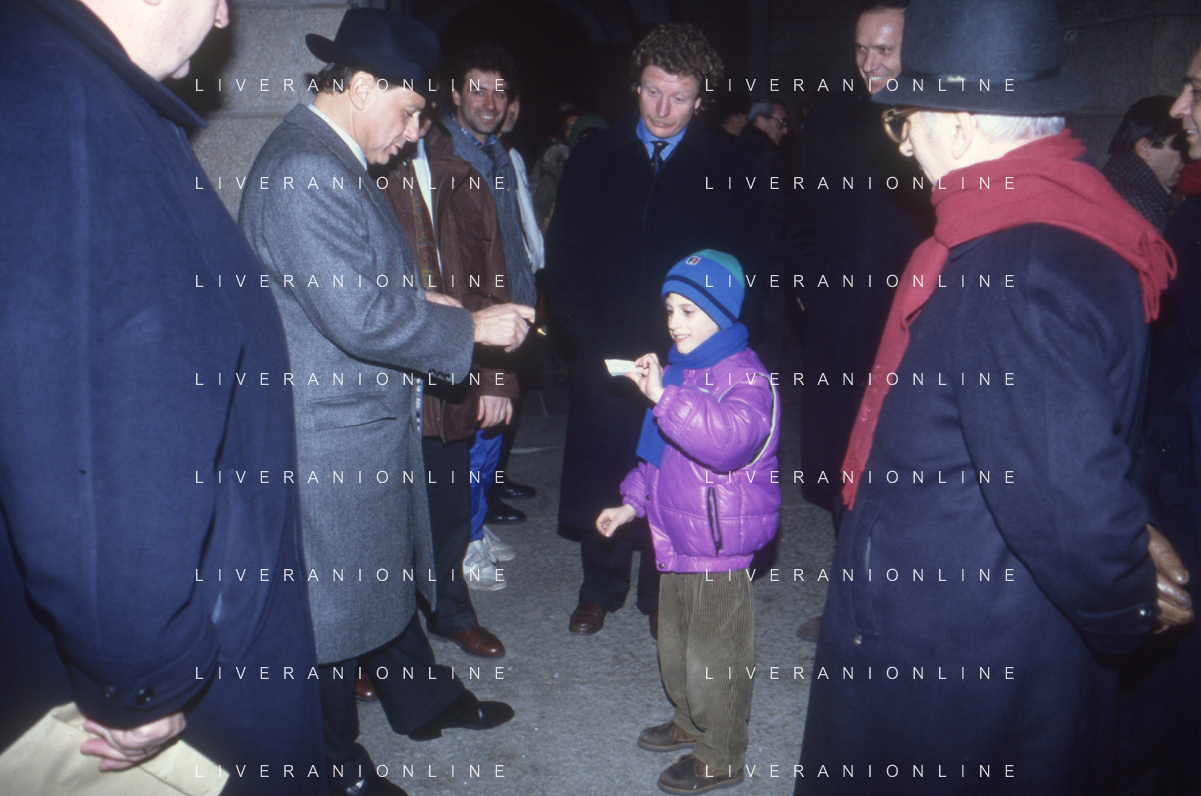 DIAP-RETROSPETTIVA SILVIO BERLUSCONI PRESIDENTE DEL MILAN CALCIO E POLITICO NELLA FOTO SILVIO BERLUSCONI NELL'ANNO 1992-1993 CON PIERSILVIO BERLUSCONI AG ALDO LIVERANI SAS
