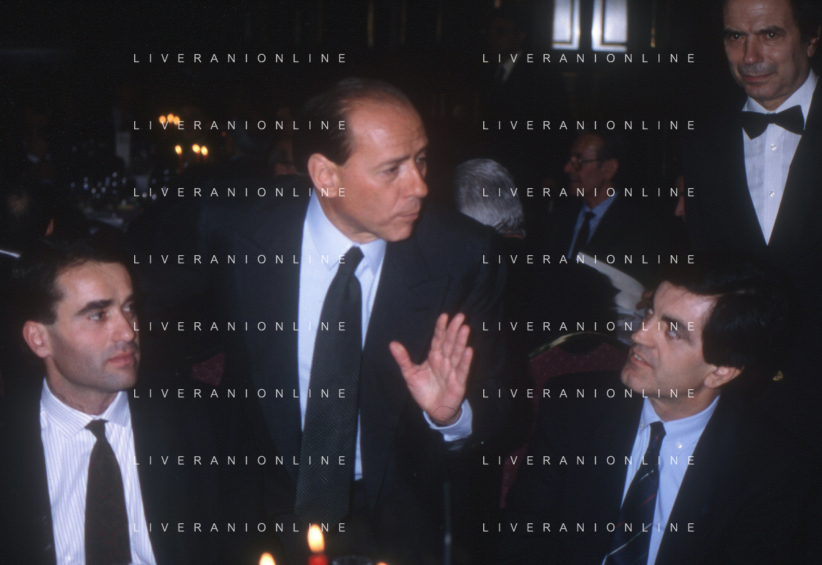 DIAP-RETROSPETTIVA SILVIO BERLUSCONI PRESIDENTE DEL MILAN CALCIO E POLITICO NELLA FOTO SILVIO BERLUSCONI NELL'ANNO 1992-1993 A MILANO CON CESARE LANZA AG ALDO LIVERANI SAS