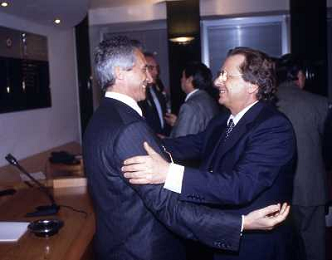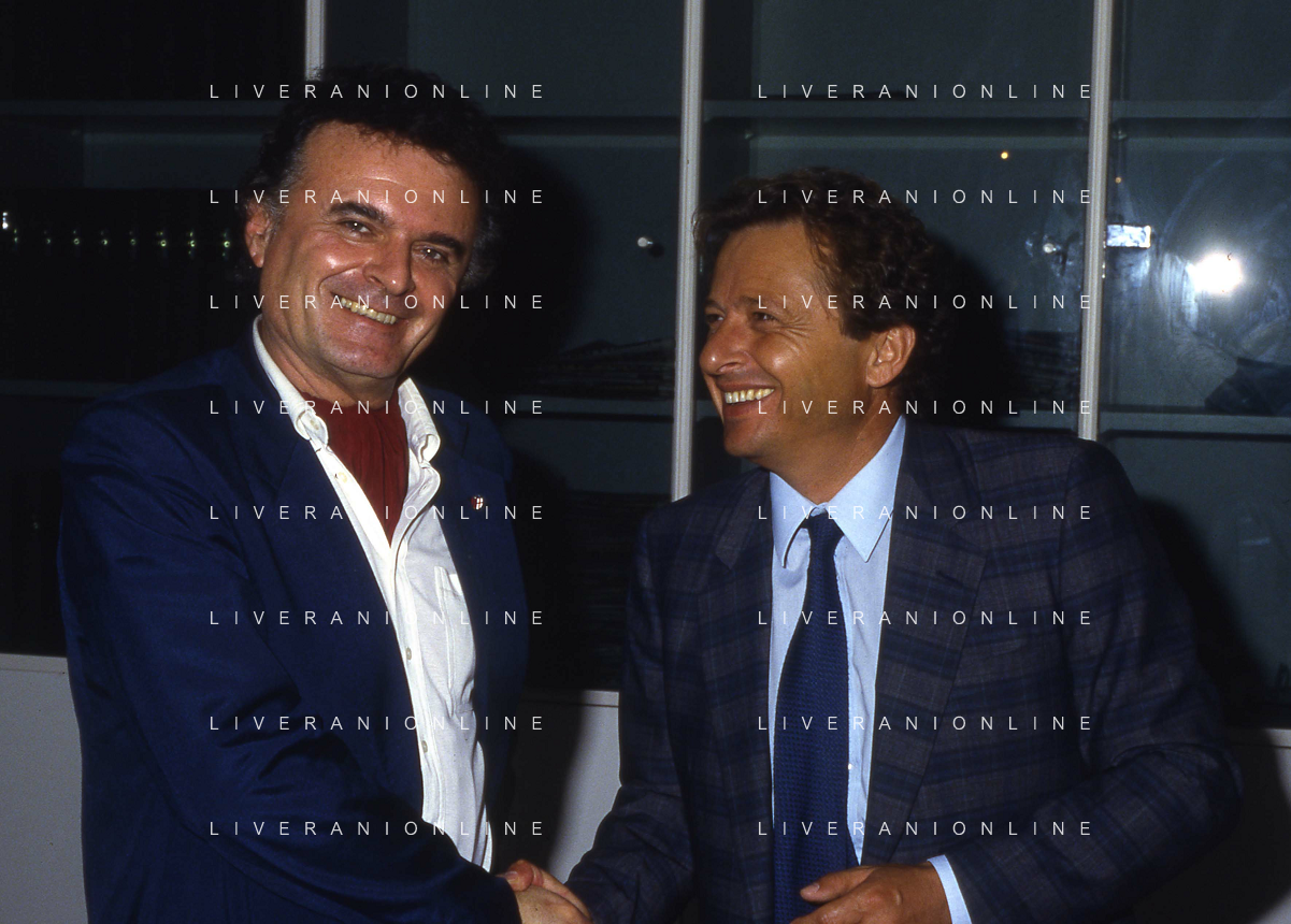 RETROSPETTIVA GINO CORIONI NELLA FOTO GINO CORIONI CON SILVIO BERLUSOCNI AG ALDO LIVERANI SAS