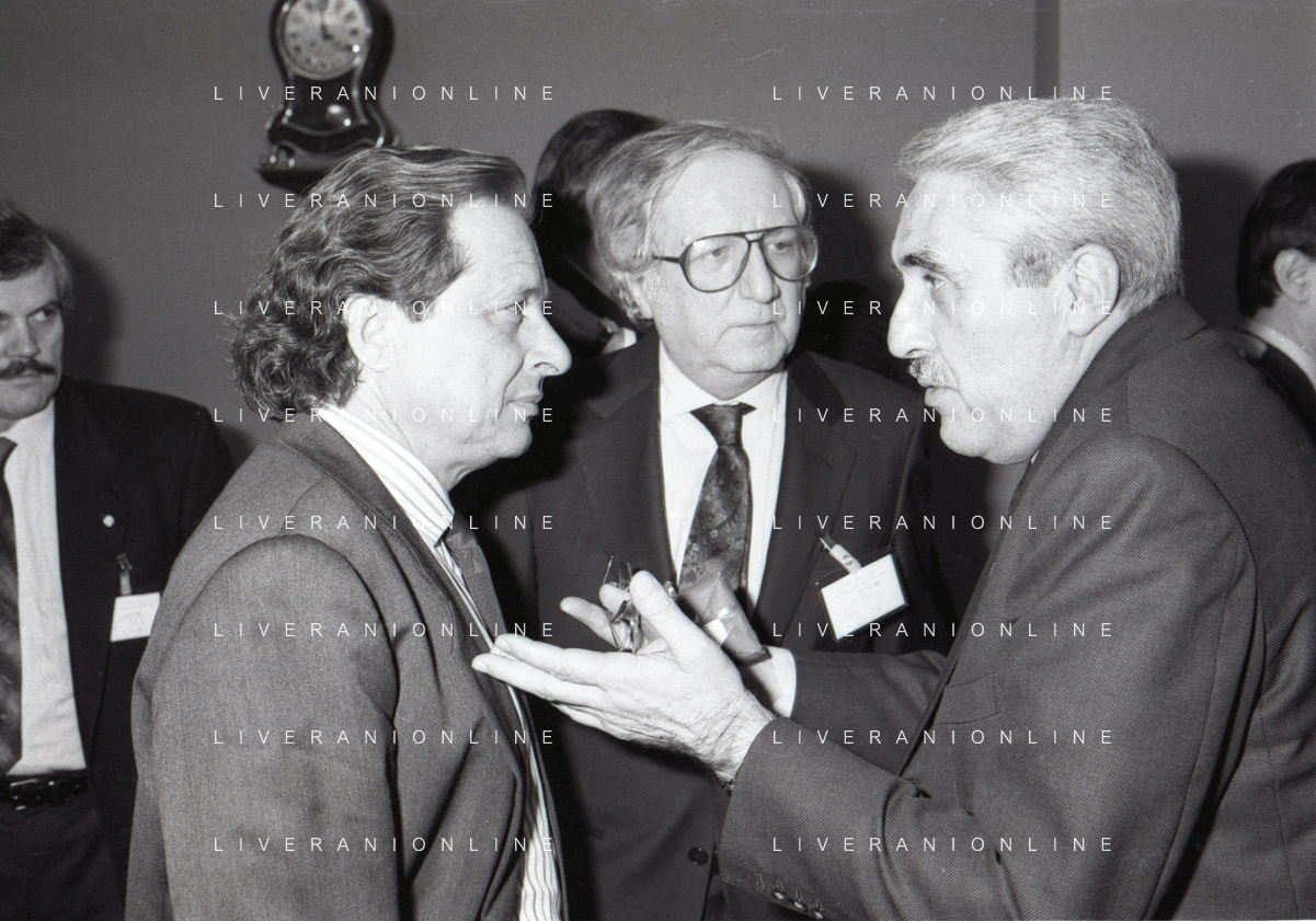 RETROSPETTIVA GINO CORIONI NELLA FOTO GINO CORIONI CON ADELIO MORO E MIRCEA LUCESCU AG ALDO LIVERANI SAS