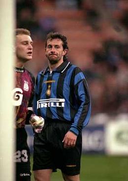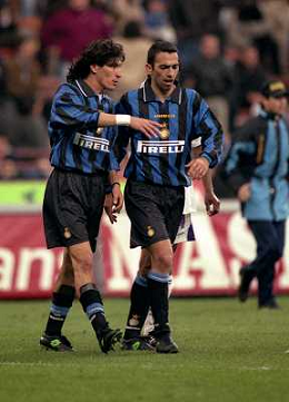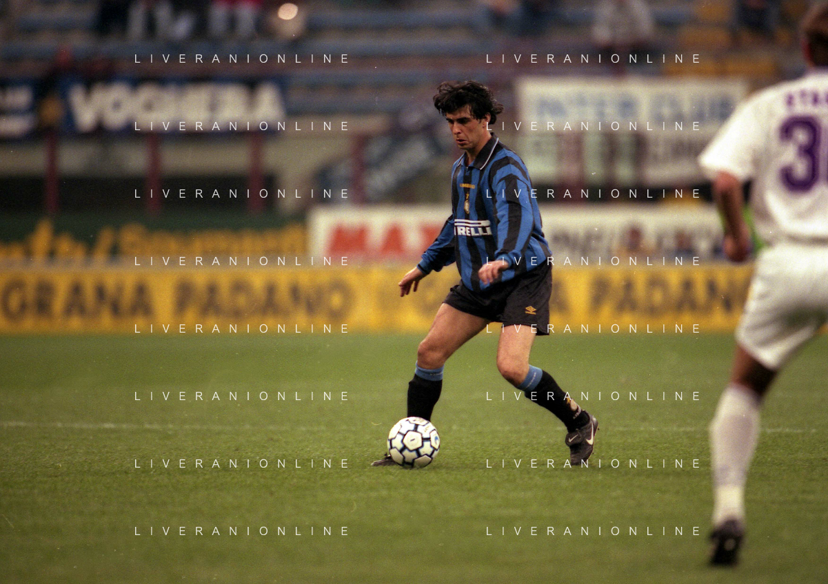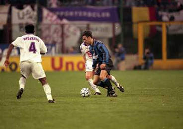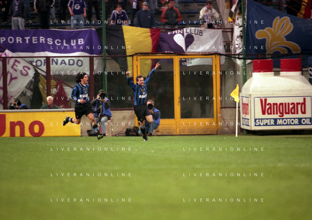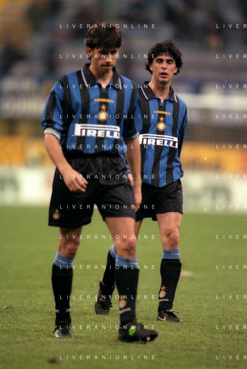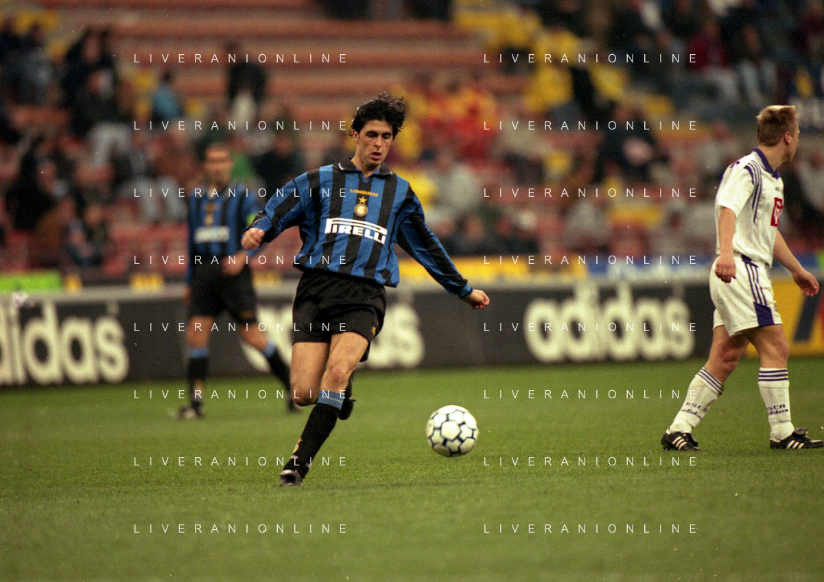 18-03-1997 QUARTI DI FINALE COPPA UEFA INTER ANDERLECHT NELLA FOTO GIUSEPPE BERGOMI AG ALDO LIVERANI SAS