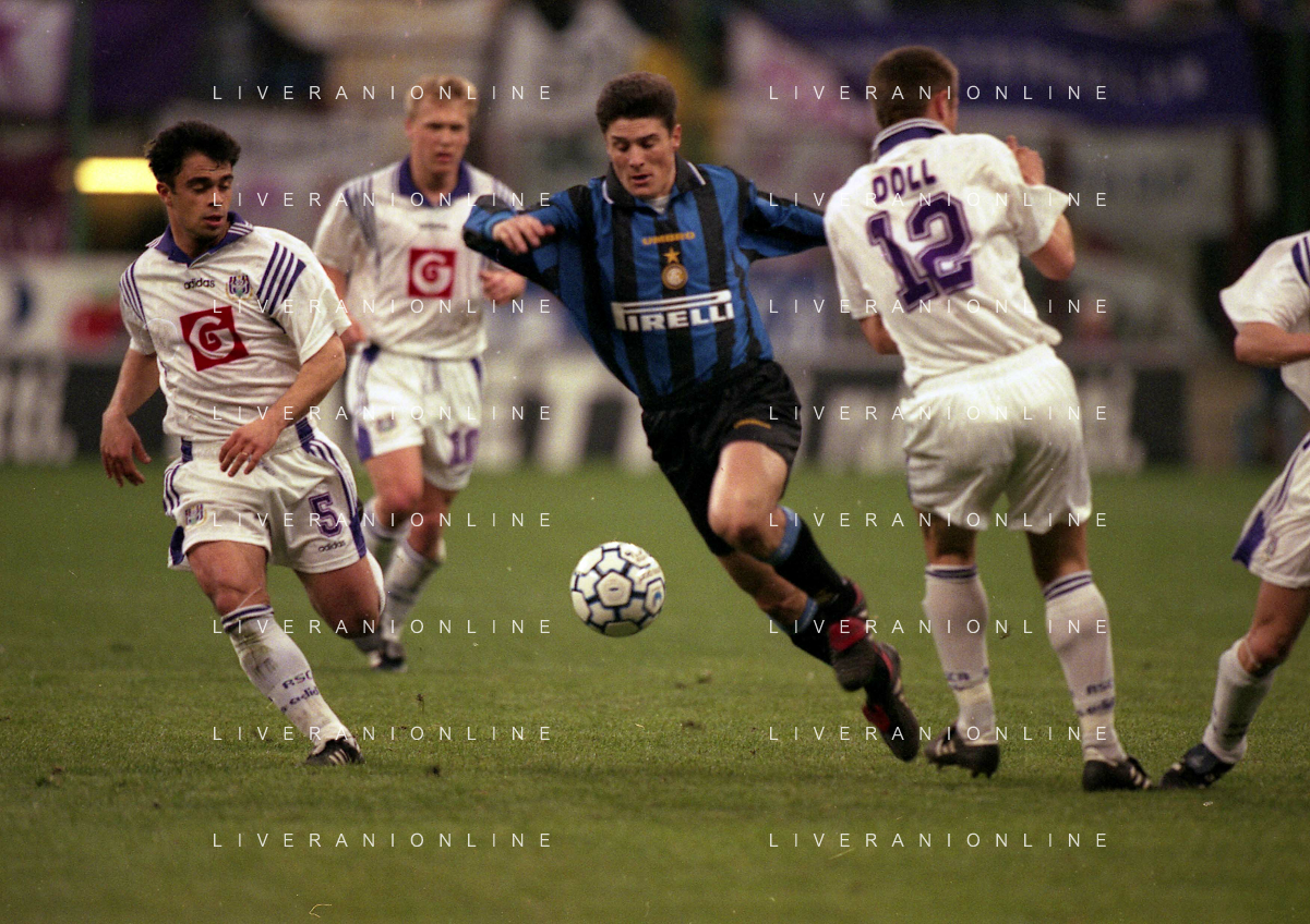 18-03-1997 QUARTI DI FINALE COPPA UEFA INTER ANDERLECHT NELLA FOTO JAVIER ZANETTI AG ALDO LIVERANI SAS