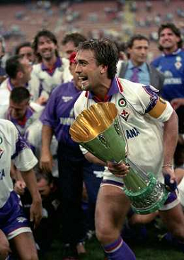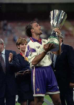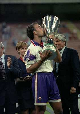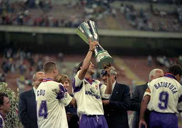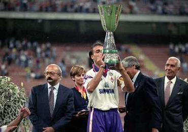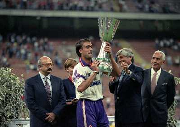 MILANO 25-08-1996 SUPERCOPPA ITALIANA MILAN FIORENTINA NELLA FOTO GABRIEL BATISTUTA CON LA SUPER COPPA ITALIANA AG ALDO LIVERANI SAS