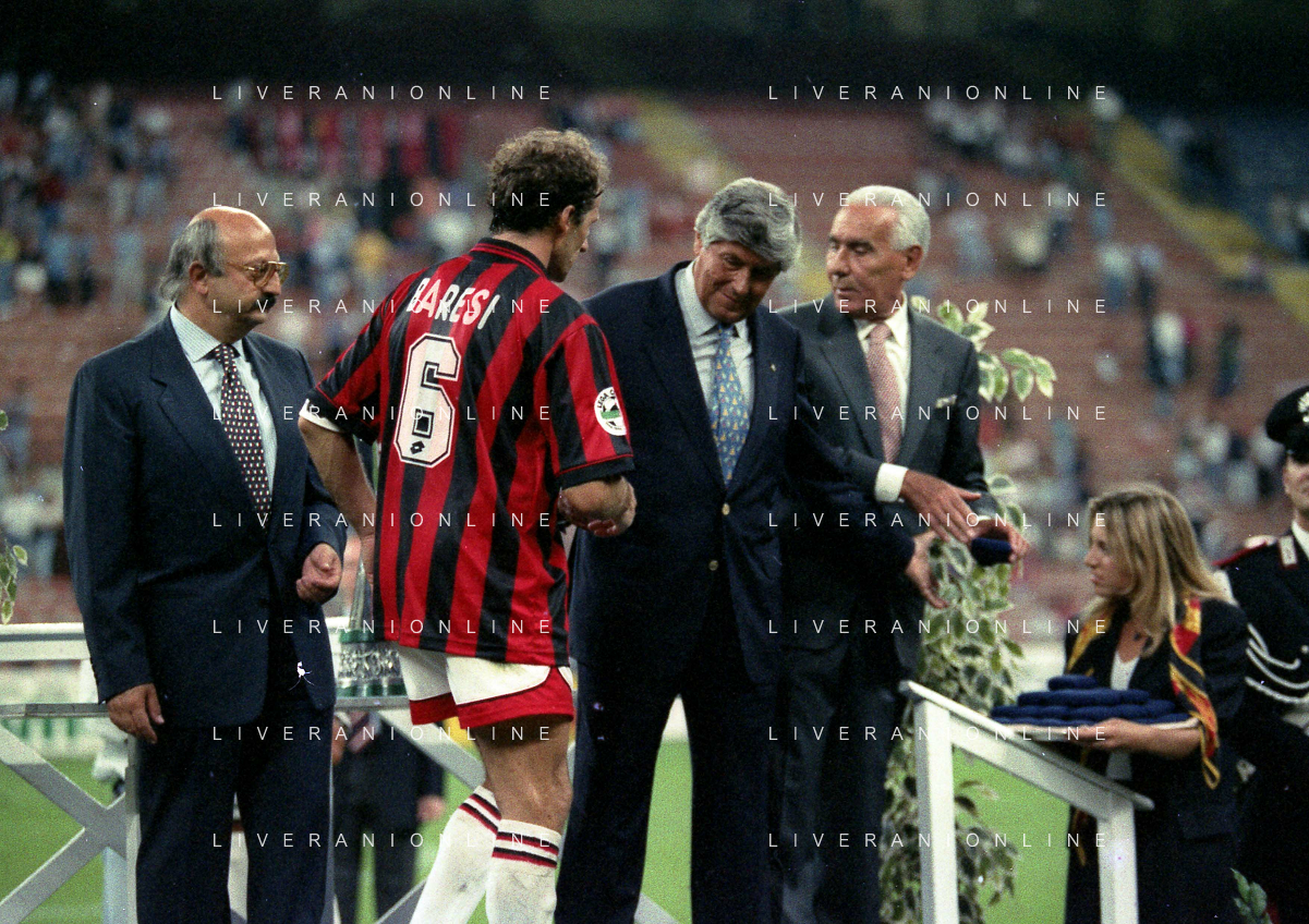 MILANO 25-08-1996 SUPERCOPPA ITALIANA MILAN FIORENTINA NELLA FOTO LUCIANO NIZZOLA PREMIA I GIOCATORI DEL MILAN PER IL SECONDO POSTO AG ALDO LIVERANI SAS