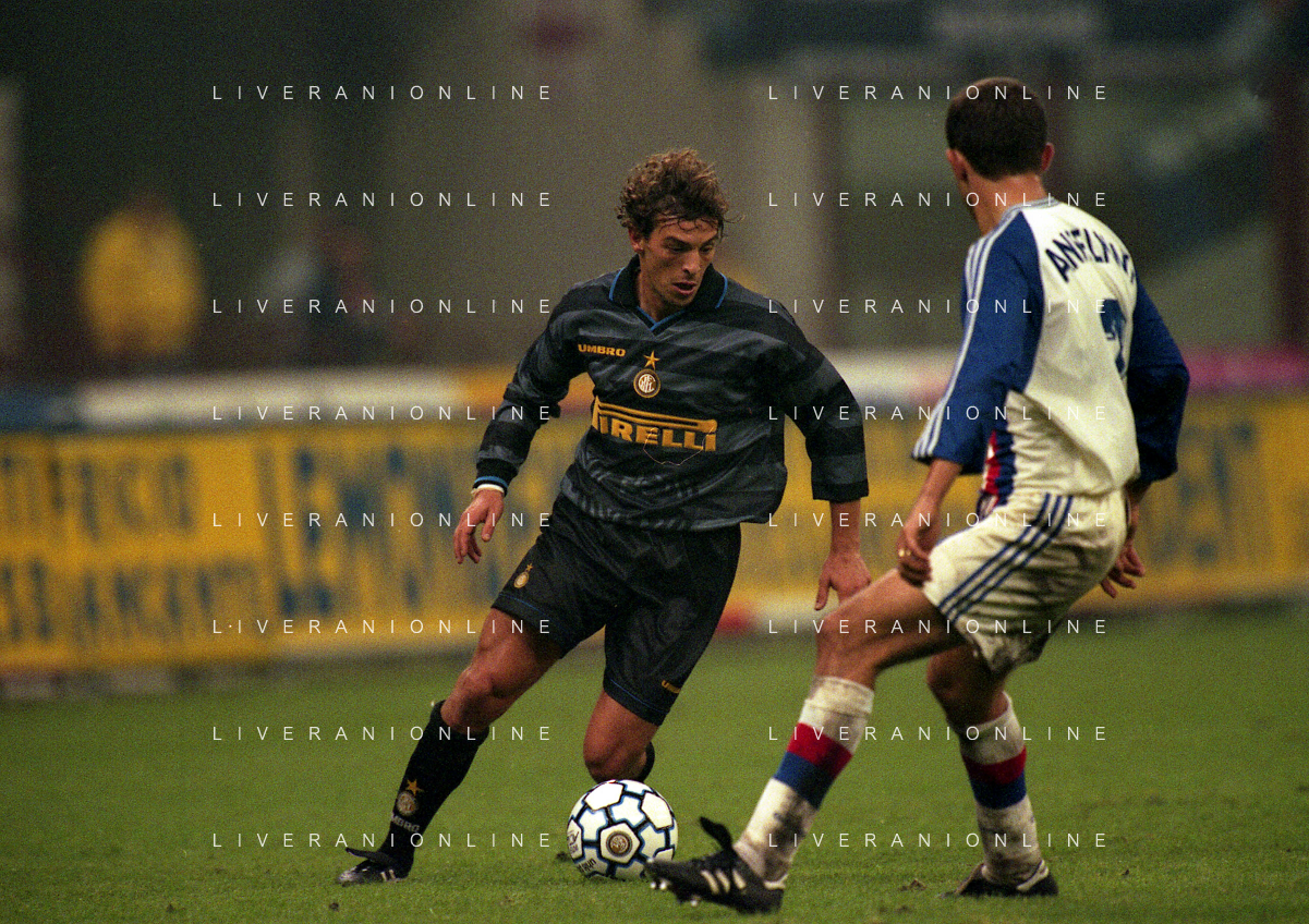 MILAN COPPA UEFA 21-10-1997 INTER OLYMPIC LIONE NELLA FOTO GIUSEPPE BERGOMI AG ALDO LIVERANI SAS