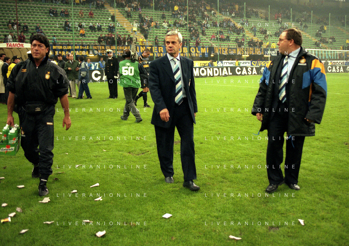 MILAN COPPA UEFA 21-10-1997 INTER OLYMPIC LIONE NELLA FOTO LUIGI SIMONI-MASSIMO DELLA CASA- GUIDO SUSINI AG ALDO LIVERANI SAS