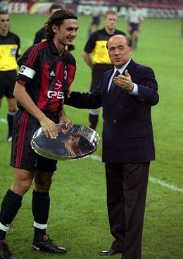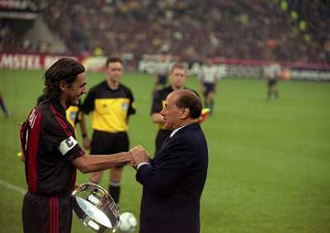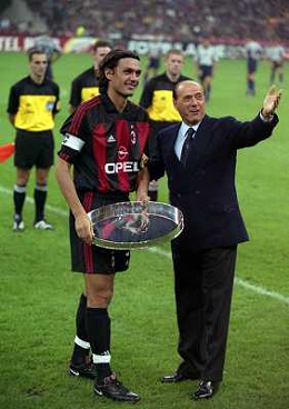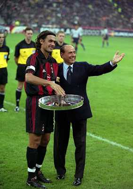 18-10-2000 MILAN BARCELLONA CHAMPIONS LEAGUE NELLA FOTO PAOLO MALDINI PREMIATO DA SILVIO BERLUSCONI AG ALDO LIVERANI SAS