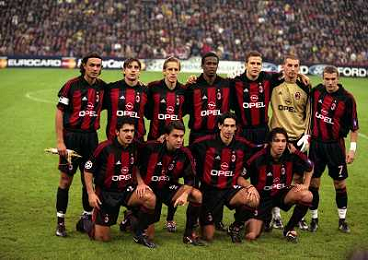 18-10-2000 MILAN BARCELLONA CHAMPIONS LEAGUE NELLA FOTO FORMAZIONE MILAN PAOLO MALDINI-FRANCESCO COCO-MASSIMO AMBROSINI-ROQUE JUNIOR-OLIVER BIERHOFF-CHRISTIAN ABBIATI-ANDRIY SHECHENKO. GENNARO GATTUSO-ALESSANDRO COSTACURTA-DEMETRIO ALBERTINI- JOSE MARI AG ALDO LIVERANI SAS