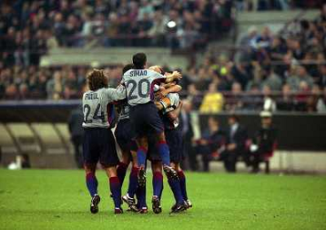 18-10-2000 MILAN BARCELLONA CHAMPIONS LEAGUE NELLA FOTO ABBRACCI BERCELLONA AG ALDO LIVERANI SAS