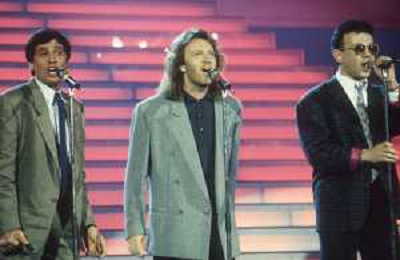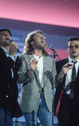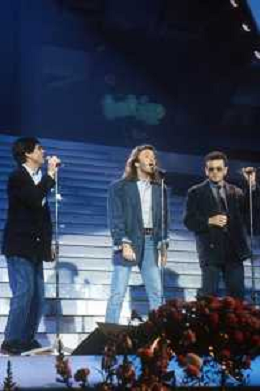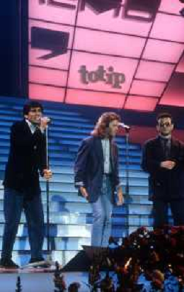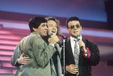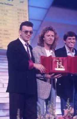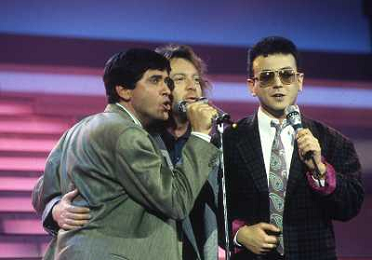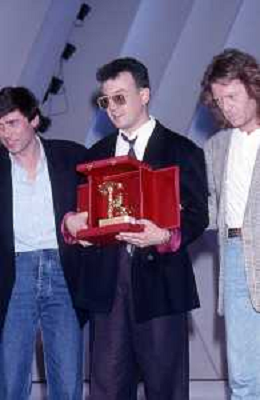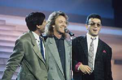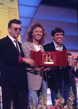DIAP-1987 FESTIVAL DELLA CANZONE ITALIANA A SANREMO NELLA FOTO GIANNI MORANDI-UMBERTO TOZZI E ENRICO RUGGERI VINCONO IL FESTIVAL DI SANREMO NELL'ANNO 1987 AG ALDO LIVERANI SAS