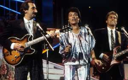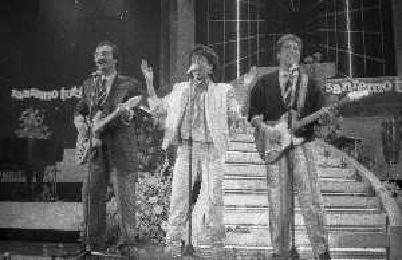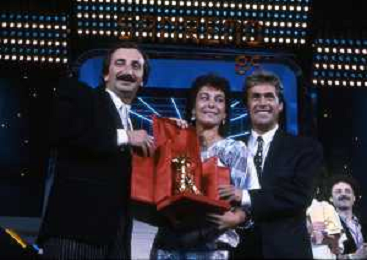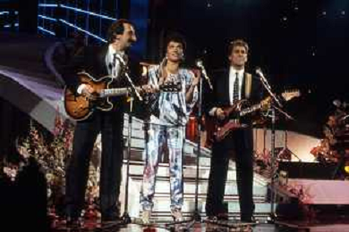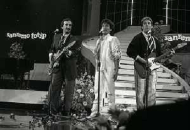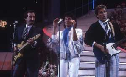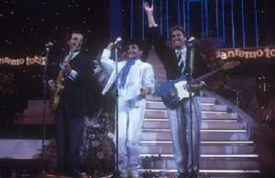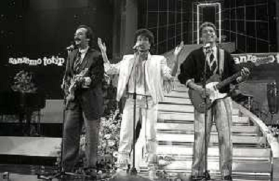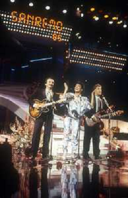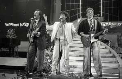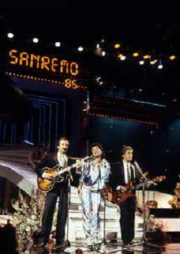 RICCHI E POVERI gruppo musicale italiano, nato artisticamente nel 1968, a Genova - Retrospettiva (composto da Angela Brambati, Angelo Sotgiu e Franco Gatti) nella foto Teatro Ariston di Sanremo 35mo Festival della Canzone Italiana - 1985 vincitori con la canzone ' Se m'innamoro ' © Archivio / AGENZIA ALDO LIVERANI SAS