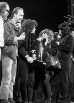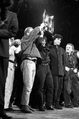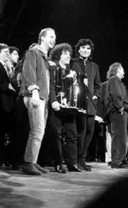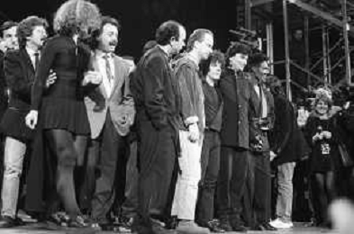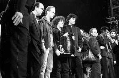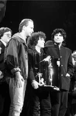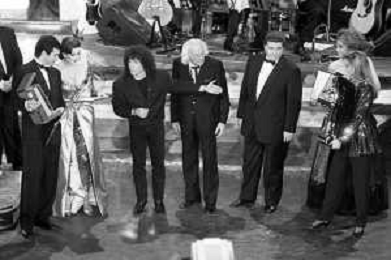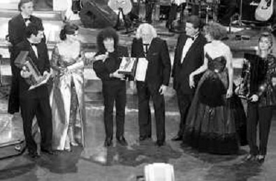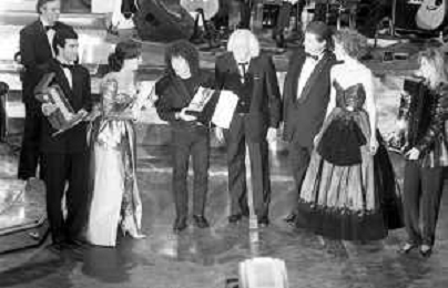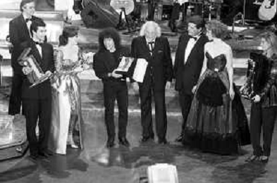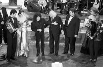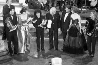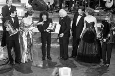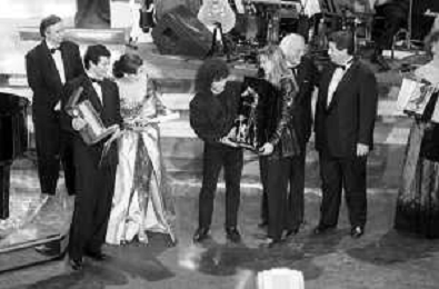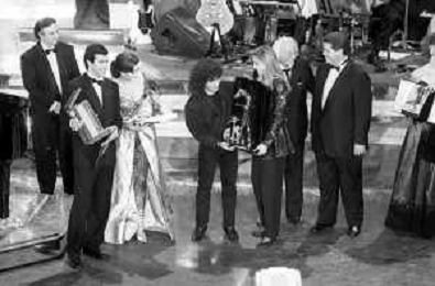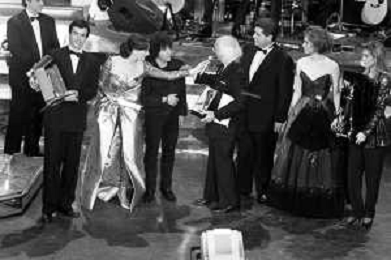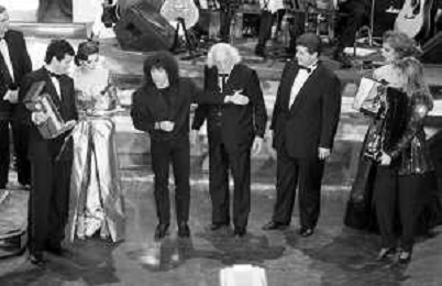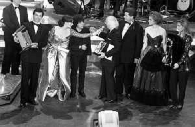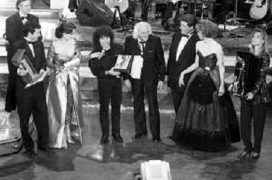 RETROSPETTIVA RICCARDO COCCIANTE CANTAUTORE NELLA FOTO VINCITORE DEL 41mo FESTIVAL DI SANREMO NEL 1991 CON EDWIGE FENECH E ANDREA OCCHIPINTI (PRESENTATORI) ©DFP/ ARCHIVIO AGENZIA ALDO LIVERANI SAS