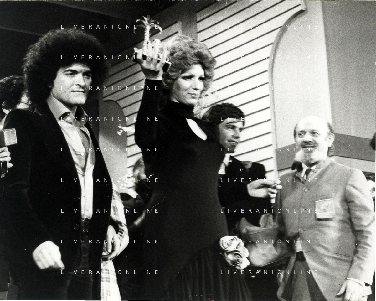 1974 SANREMO-FESTIVAL DELLA CANZONE ITALIANA NELLA FOTO IVA ZANICCHI VINCE IL FESTIVAL DI SAN REMO CON CRISTIANO MALGIOGLIO AUTORE AG ALDO LIVERANI SAS