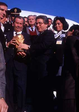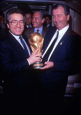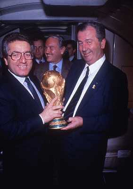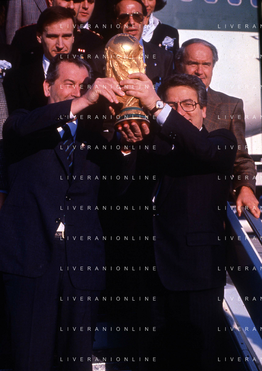 RETROSPETTIVA ANTONIO MATARRESE DIRIGENTE CALCIO NELLA FOTO ANTONIO MATARRESE CON JULIO GRONDONA PRESIDENTE DELLA FEDERAZIONE ARGENTINA E LA COPPA DEL MONDO 1990 AG ALDO LIVERANI SAS