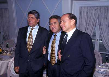 RETROSPETTIVA ANTONIO MATARRESE DIRIGENTE CALCIO NELLA FOTO ANTONIO MATARRESE-LUCIANO NIZZOLA E SILVIO BERLUSCONI AG ALDO LIVERANI SAS