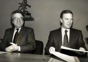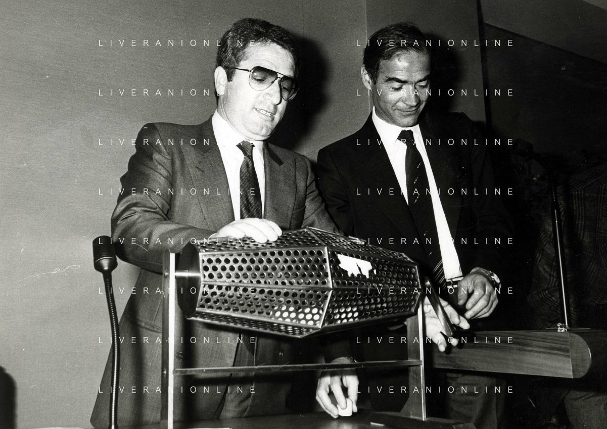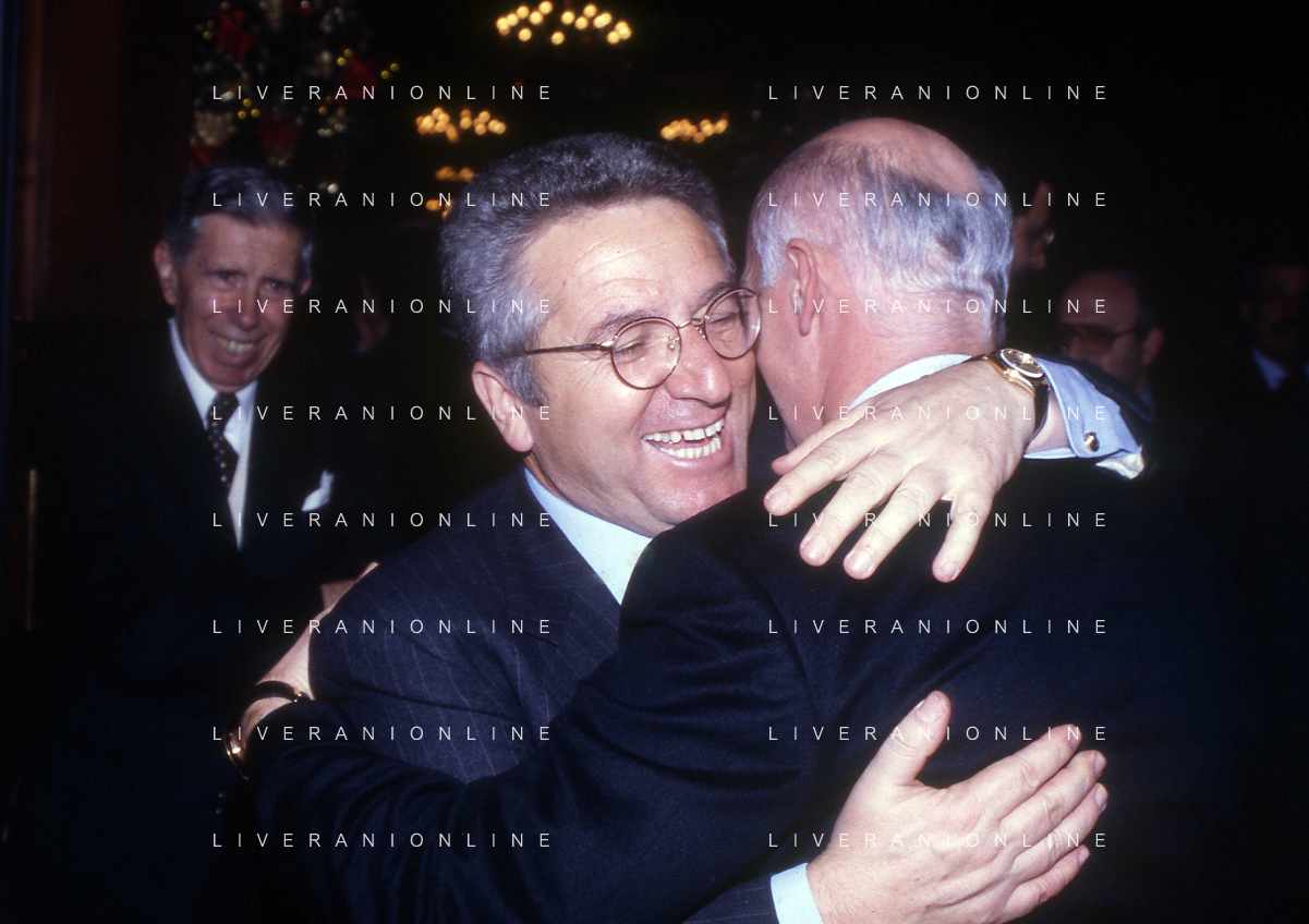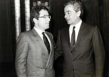 RETROSPETTIVA ANTONIO MATARRESE DIRIGENTE CALCIO NELLA FOTO ANTONIO MATARRESE CON LUCIANO NIZZOLA NEL 1987 AG ALDO LIVERANI SAS