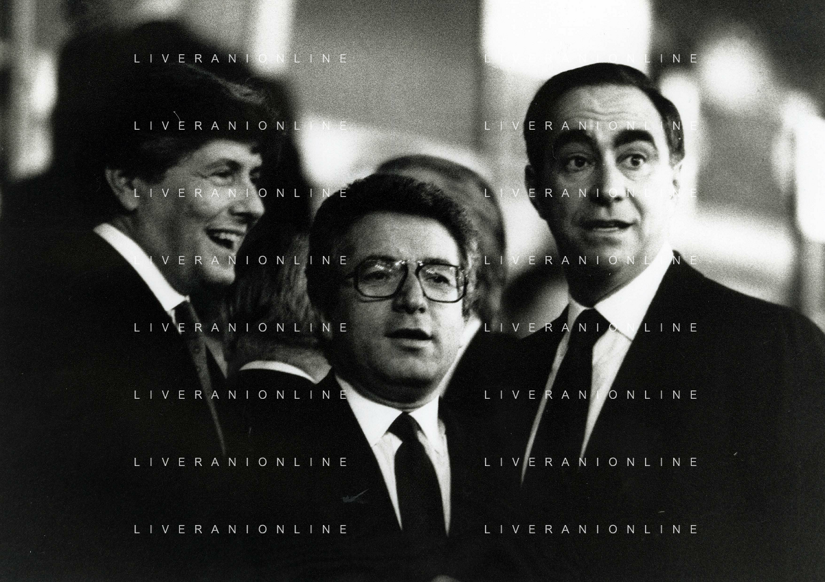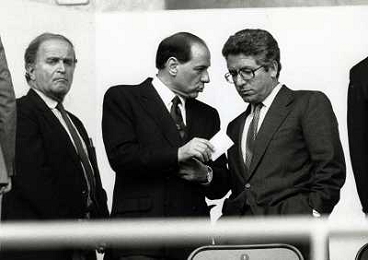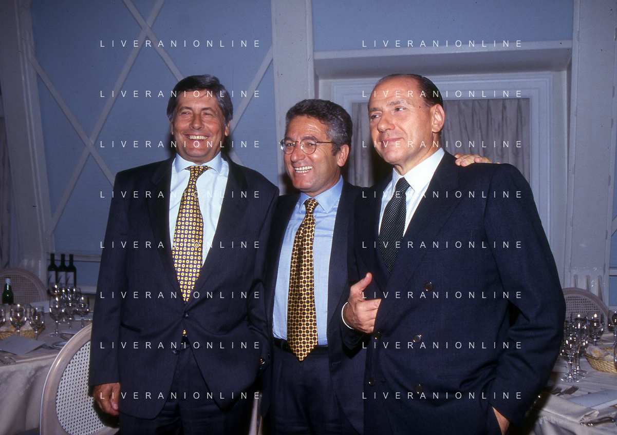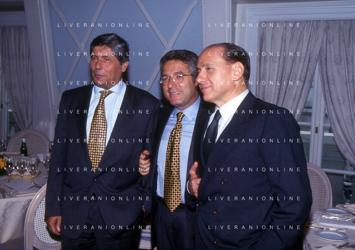 RETROSPETTIVA ANTONIO MATARRESE DIRIGENTE CALCIO NELLA FOTO LUCIANO NIZZOLA-ANTONIO MATARRESE-SILVIO BERLUSCONI NEL 1993 AG ALDO LIVERANI SAS