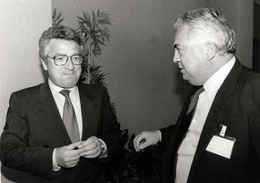 RETROSPETTIVA ANTONIO MATARRESE DIRIGENTE CALCIO NELLA FOTO ANTONIO MATARRESE CON JOHANSON 23-05-1990 FINALE DI CHAMPIONS LEAGUE BENFICA MILAN AG ALDO LIVERANI SAS