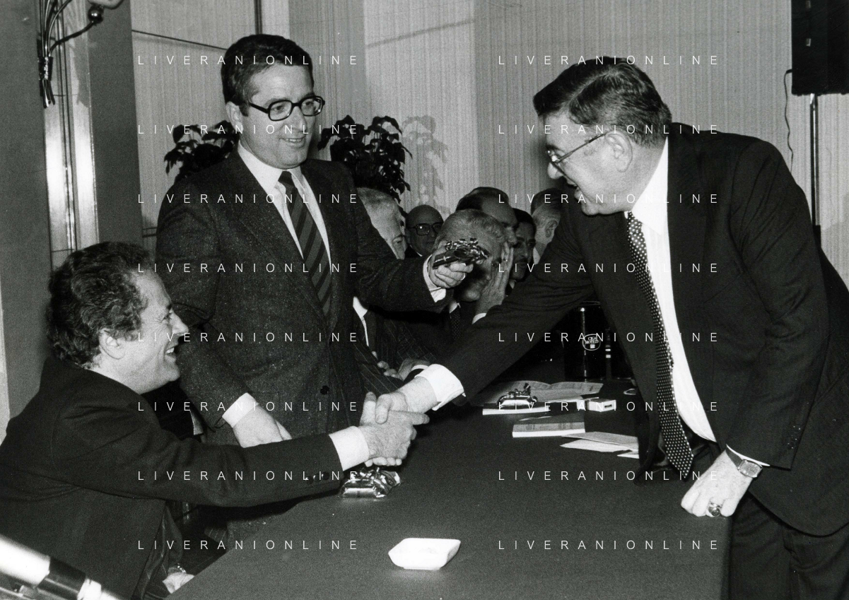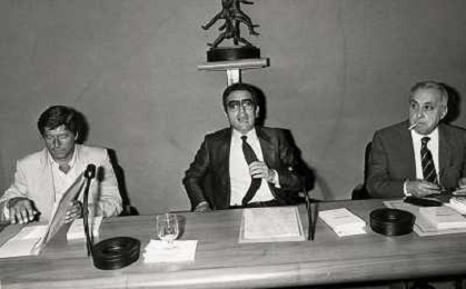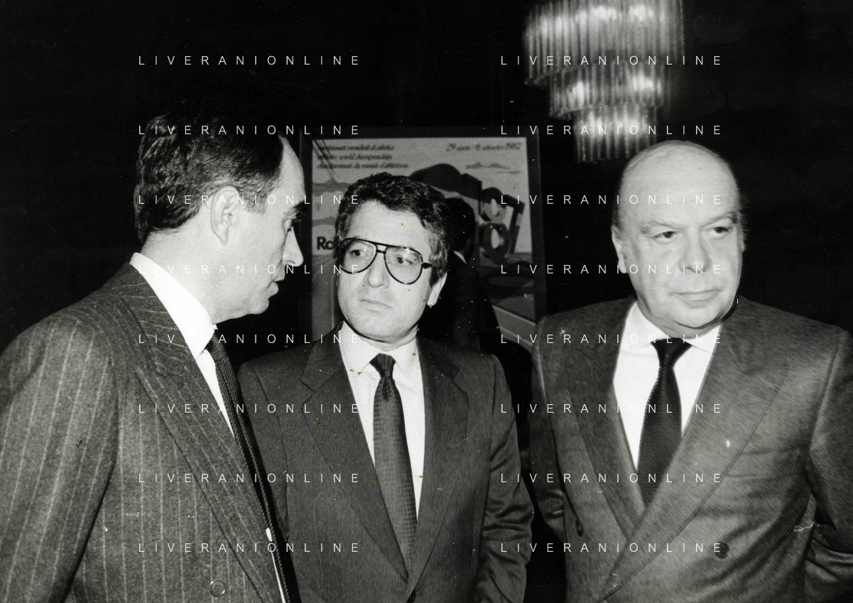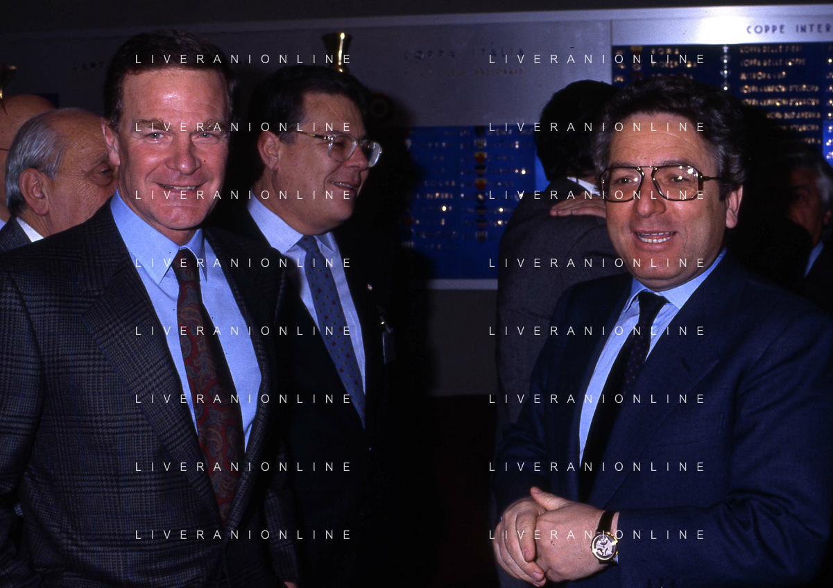 RETROSPETTIVA ANTONIO MATARRESE DIRIGENTE CALCIO NELLA FOTO ANTONIO MATARRESE ADRIANO GALLIANI E MARIO CECCHI GORI AG ALDO LIVERANI SAS