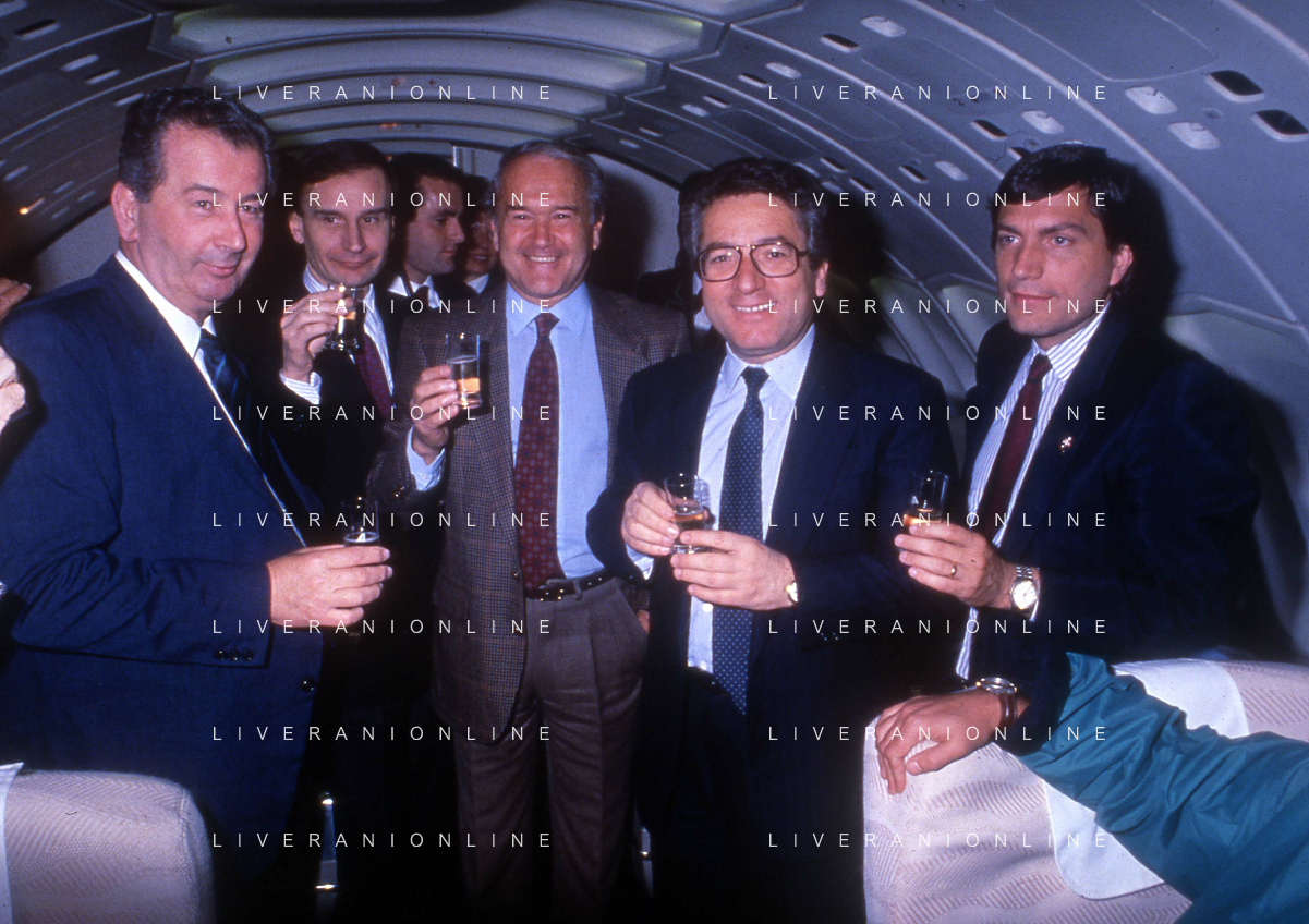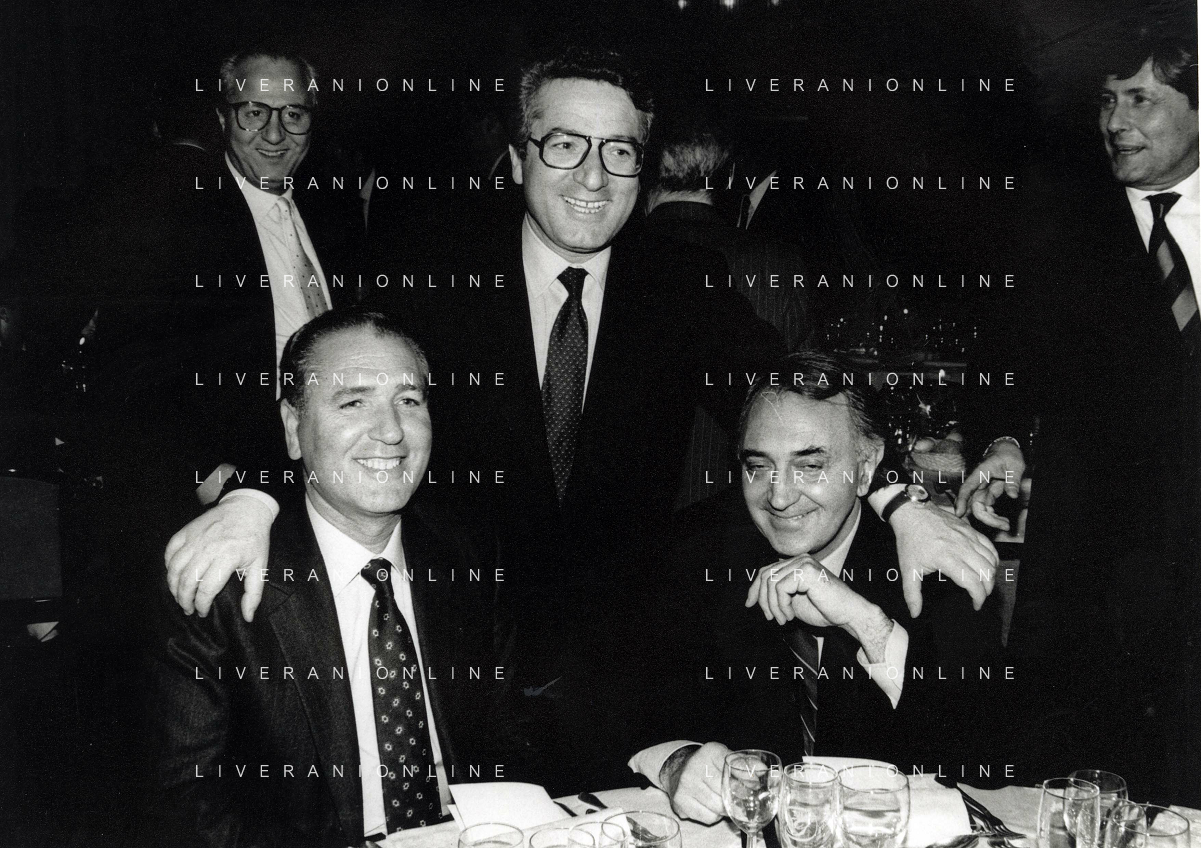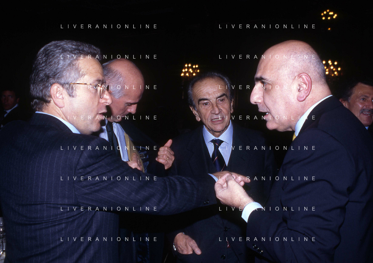 RETROSPETTIVA ANTONIO MATARRESE DIRIGENTE CALCIO NELLA FOTO ANTONIO MATARRESE-ARRIGO SACCHI-AVVOCATO GIUSEPPE PRISCO-E ADRIANO GALLIANI AG ALDO LIVERANI SAS