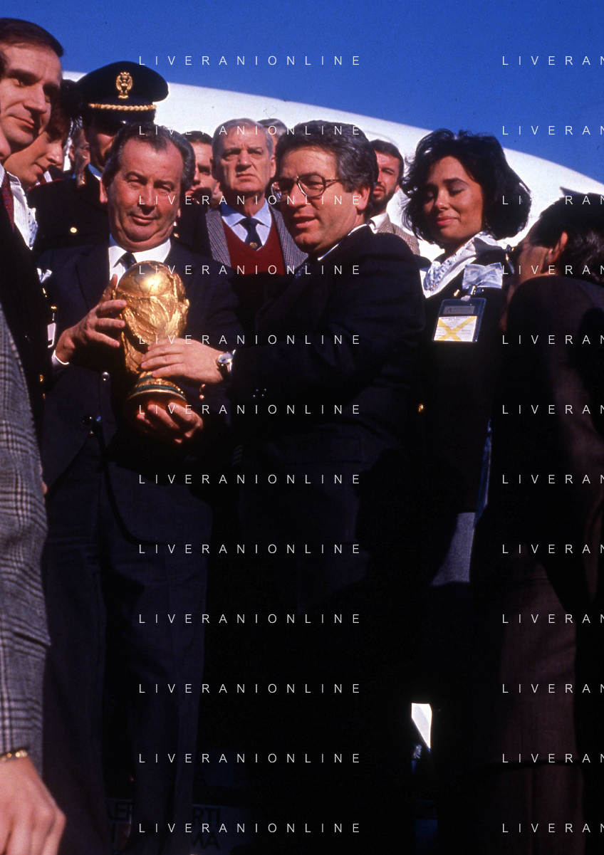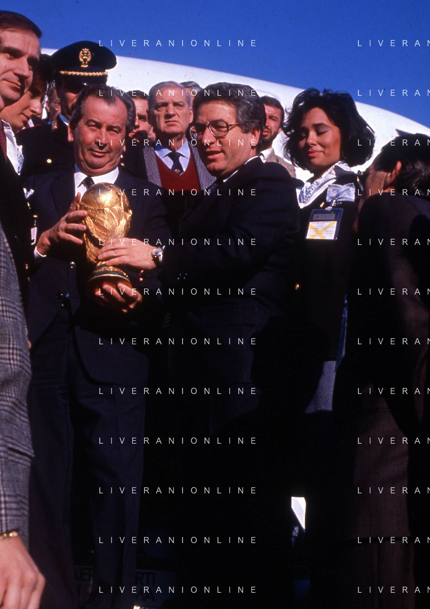 RETROSPETTIVA ANTONIO MATARRESE DIRIGENTE CALCIO NELLA FOTO ANTONIO MATARRESE CON JULIO GRONDONA PRESIDENTE DELLA FEDERAZIONE ARGENTINA E LA COPPA DEL MONDO AG ALDO LIVERANI SAS