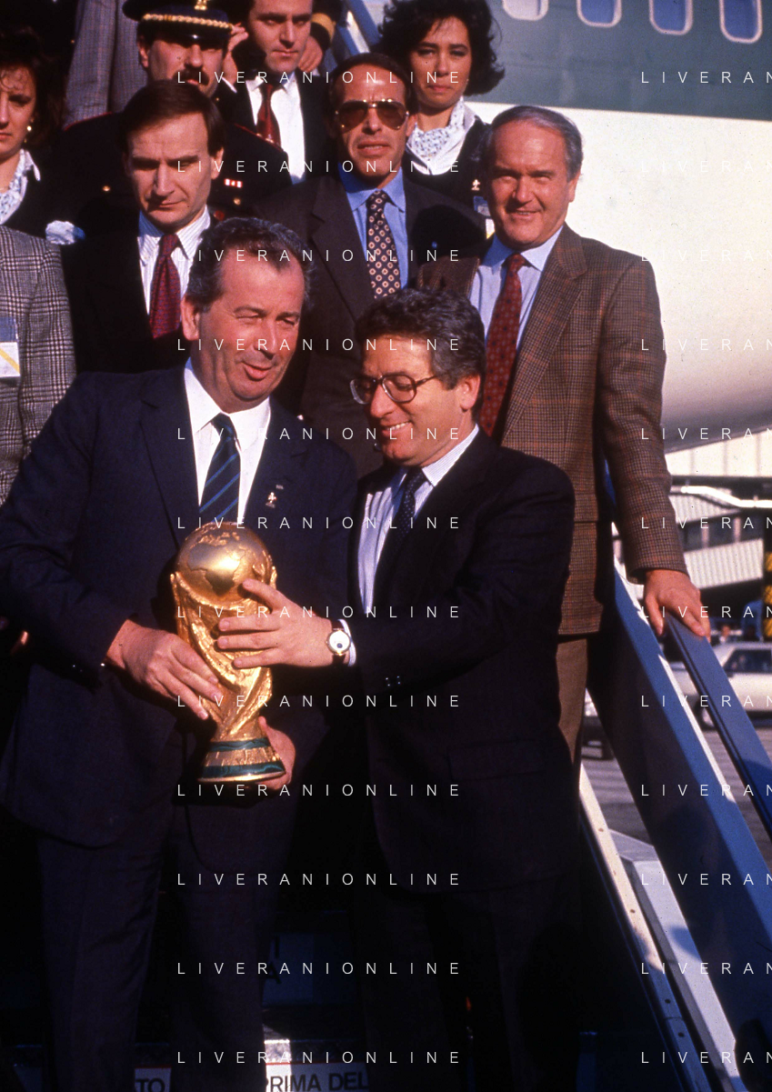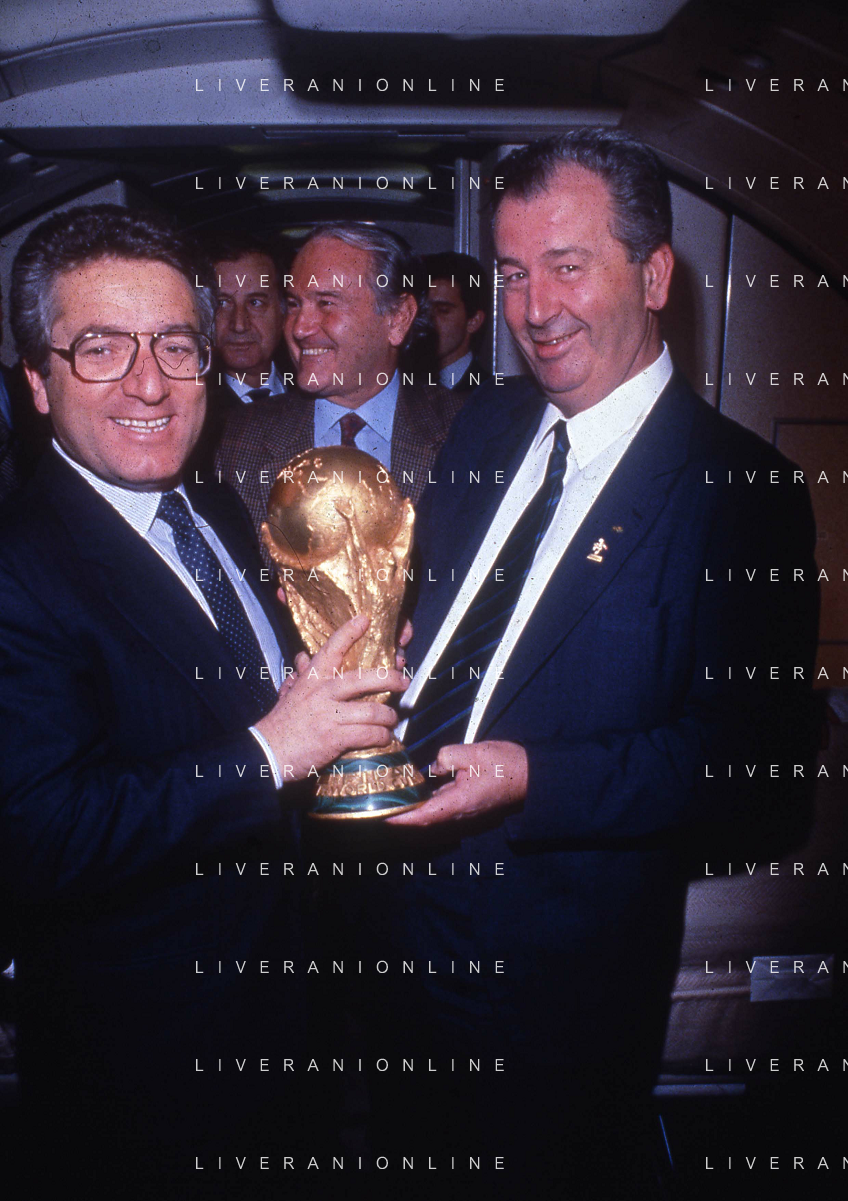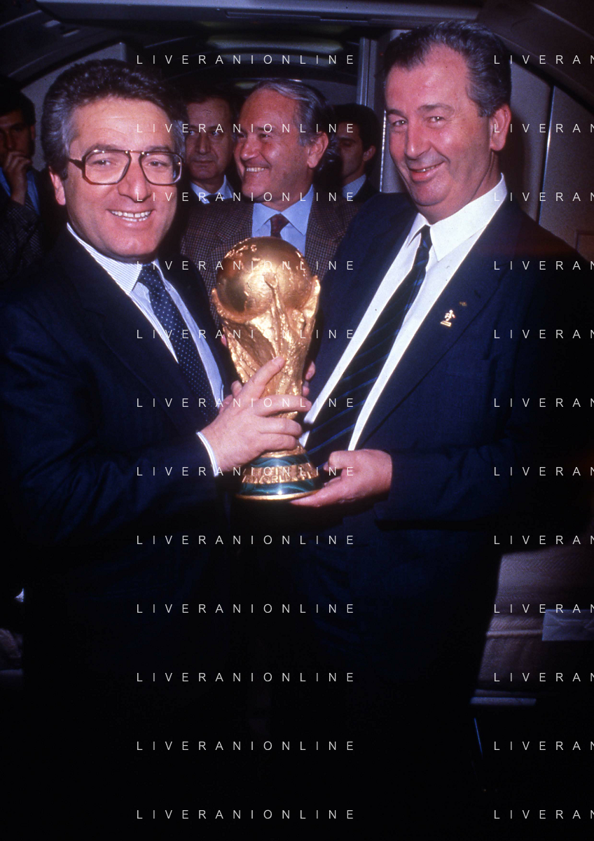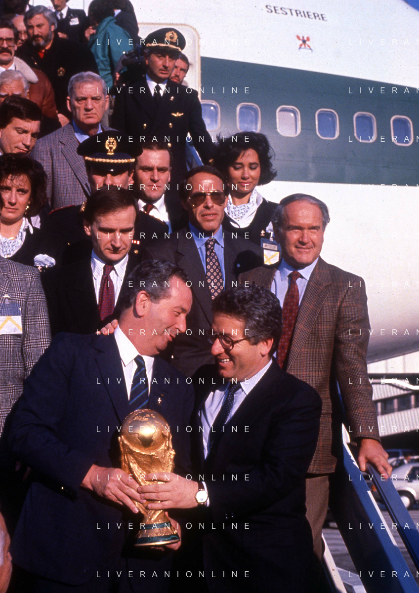 RETROSPETTIVA ANTONIO MATARRESE DIRIGENTE CALCIO NELLA FOTO ANTONIO MATARRESE CON JULIO GRONDONA PRESIDENTE DELLA FEDERAZIONE ARGENTINA E LA COPPA DEL MONDO NEL 1990 AG ALDO LIVERANI SAS