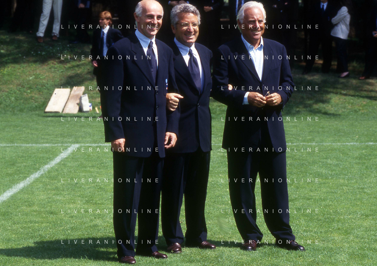 RETROSPETTIVA ANTONIO MATARRESE DIRIGENTE CALCIO NELLA FOTO ANTONIO MATARRESE CON ARRIGO SACCHI E GIORGIO ARMANI NEL 1994 AG ALDO LIVERANI SAS