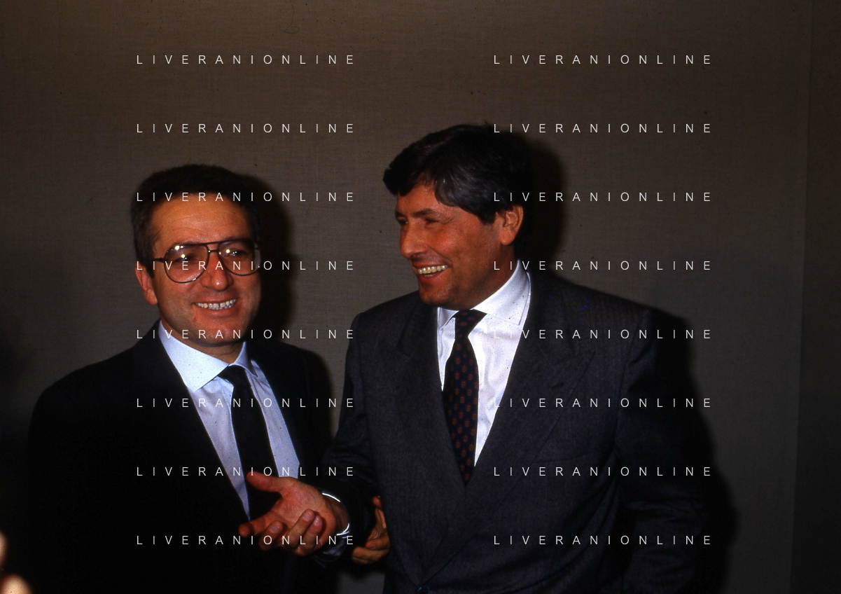 RETROSPETTIVA ANTONIO MATARRESE DIRIGENTE CALCIO NELLA FOTO ANTONIO MATARRESE CONMARIO CECCHI GORI NEL 1991 AG ALDO LIVERANI SAS