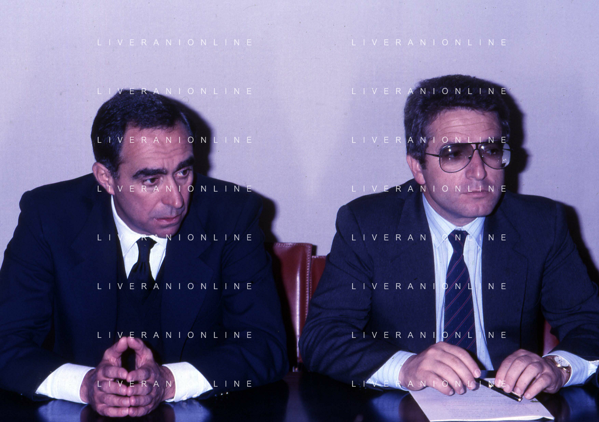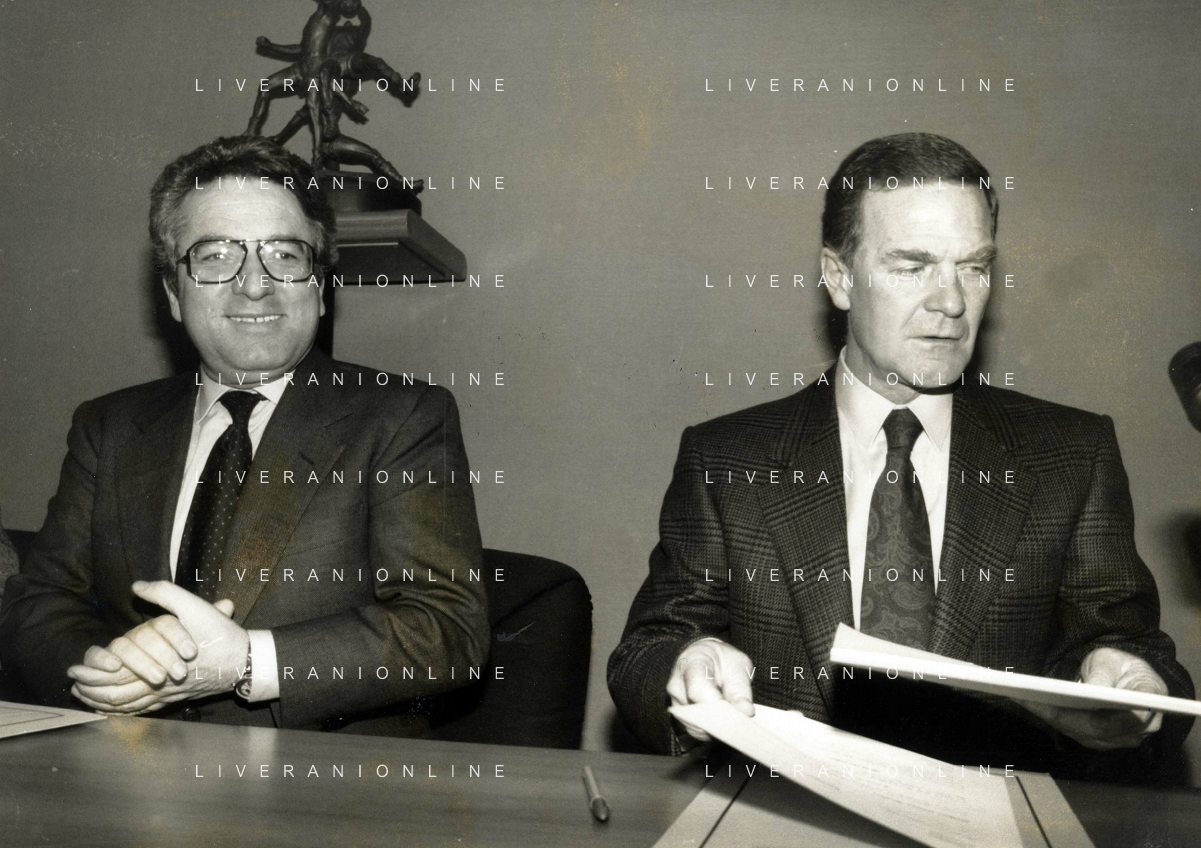 RETROSPETTIVA ANTONIO MATARRESE DIRIGENTE CALCIO NELLA FOTO ANTONIO MATARRESE E FRANCO CARRARO NEL 1987 AG ALDO LIVERANI SAS