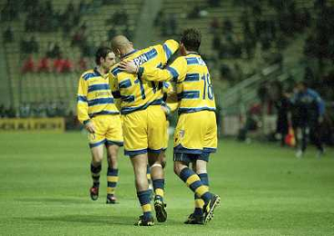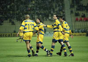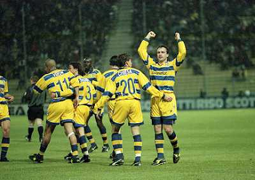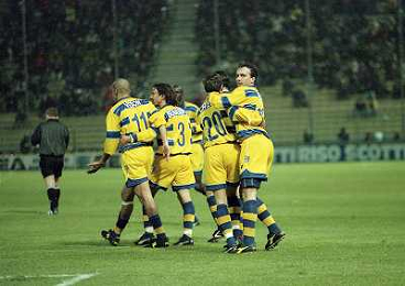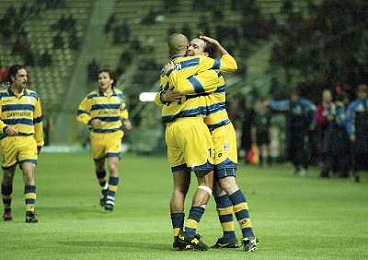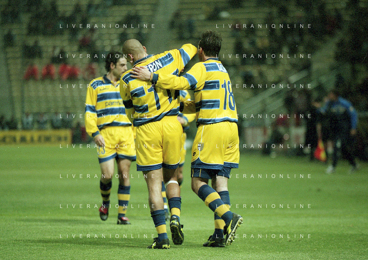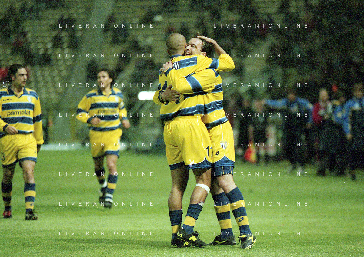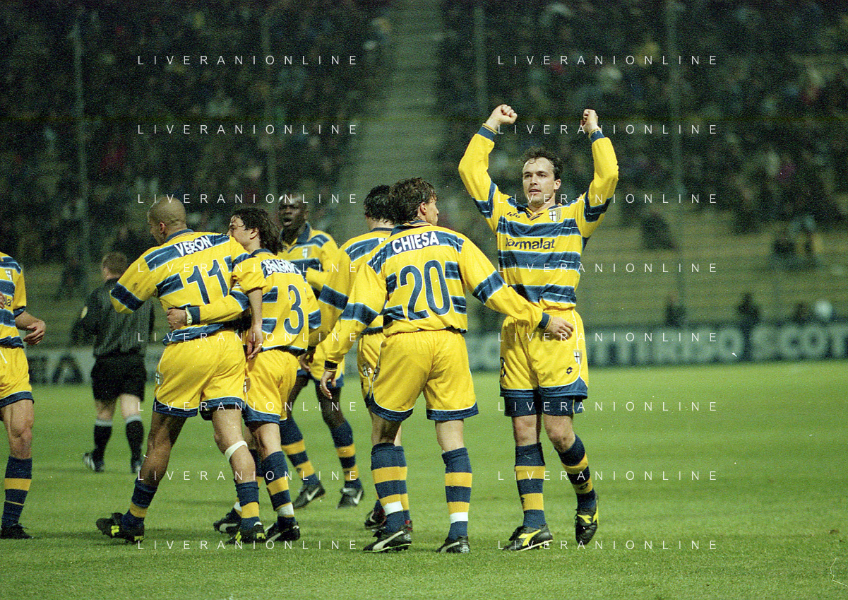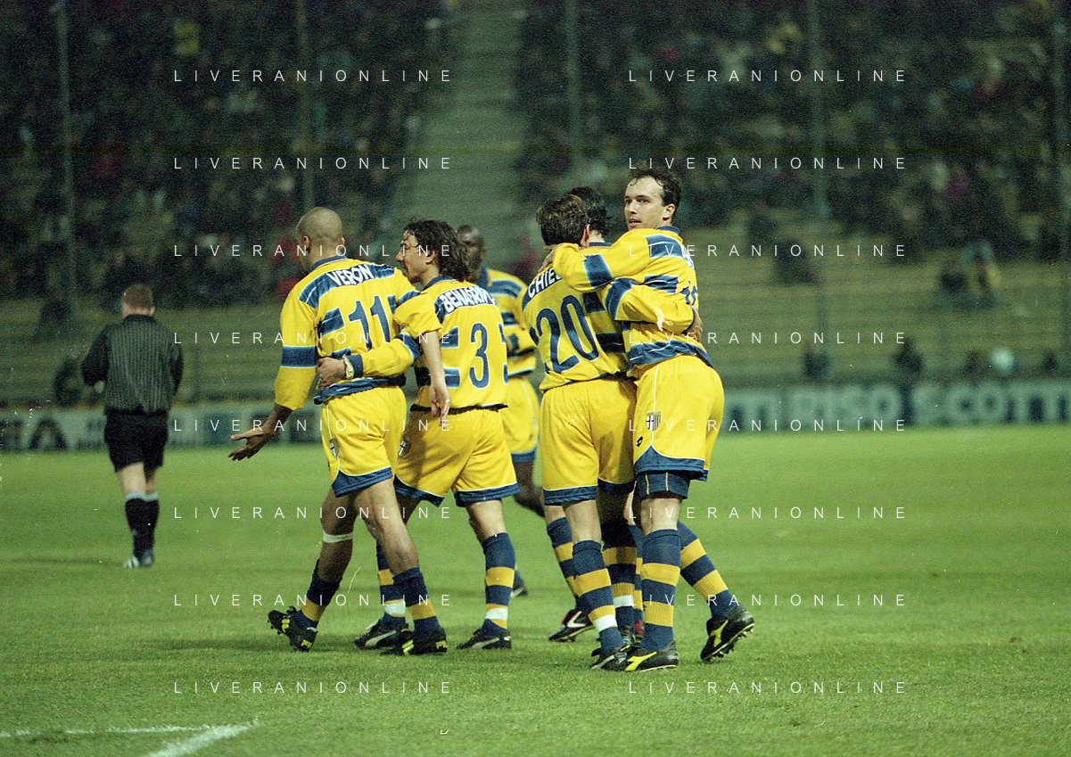 20-04-1999 PARMA ATLETICO MADRID SEMIFINALE DI COPPA UEFA NELLA FOTO ABBRACCI PARMA AG ALDO LIVERANI SAS