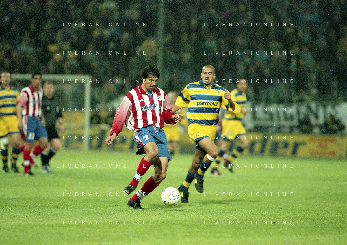 20-04-1999 PARMA ATLETICO MADRID SEMIFINALE DI COPPA UEFA NELLA FOTO DIEGO FUSER-ANTONIO CHAMOT AG ALDO LIVERANI SAS
