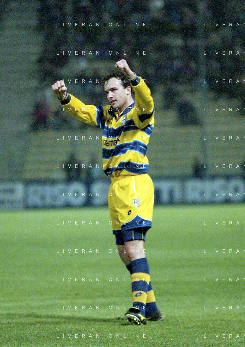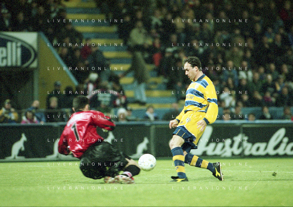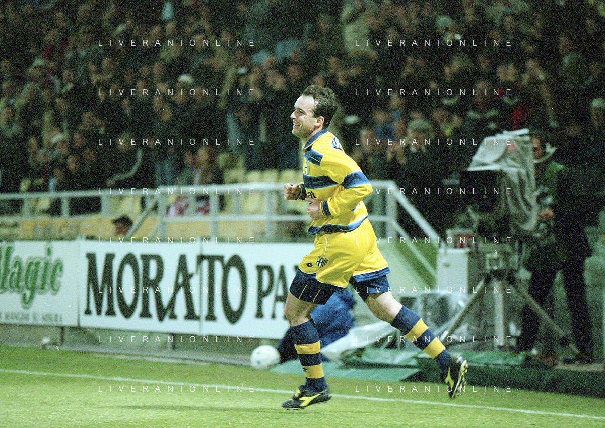 20-04-1999 PARMA ATLETICO MADRID SEMIFINALE DI COPPA UEFA NELLA FOTO GOAL ABEL BALBO AG ALDO LIVERANI SAS