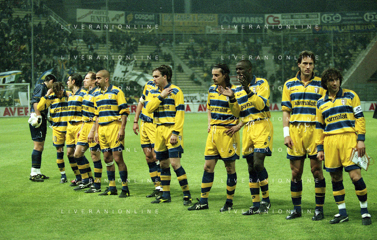 20-04-1999 PARMA ATLETICO MADRID SEMIFINALE DI COPPA UEFA NELLA FOTO FORMAZIONE PARMA AG ALDO LIVERANI SAS