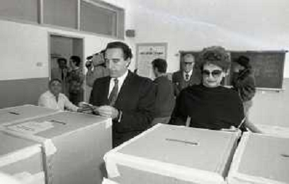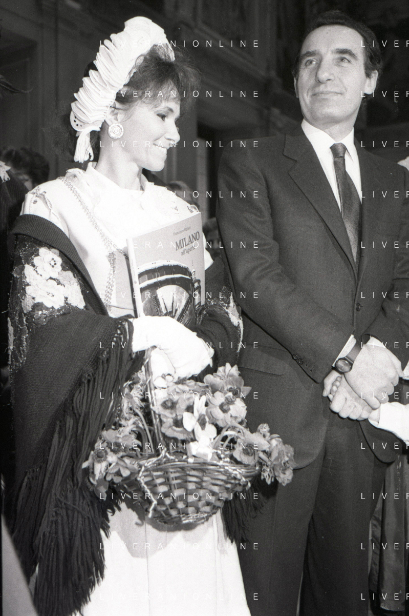 NEG -RETROSPETTIVA PAOLO PILLITTERI SINDACO DI MILANO E POLITICO PARTITO SOCIALISTA ITALIANO NELLA FOTO PAOLO PILLITTERI SINDACO DI MILANO CON LA MOGLIE ROSILDE CRAXI AG ALDO LIVERANI SAS