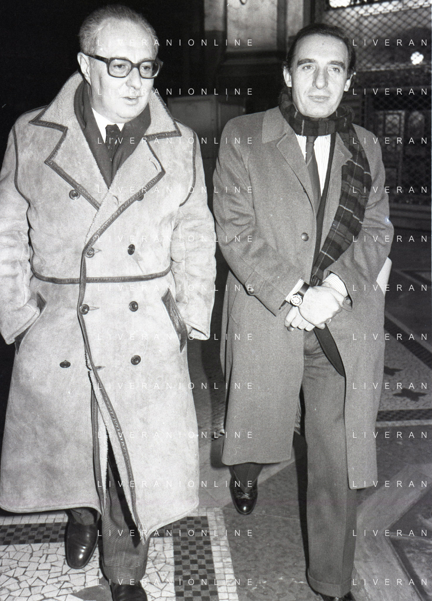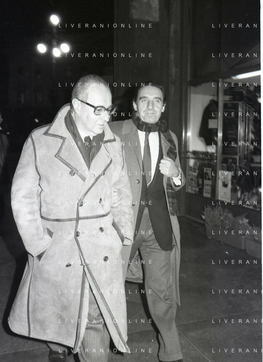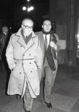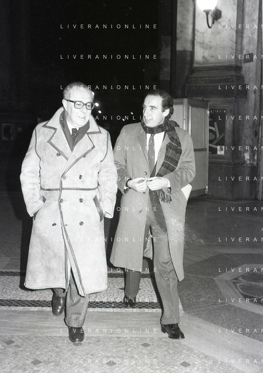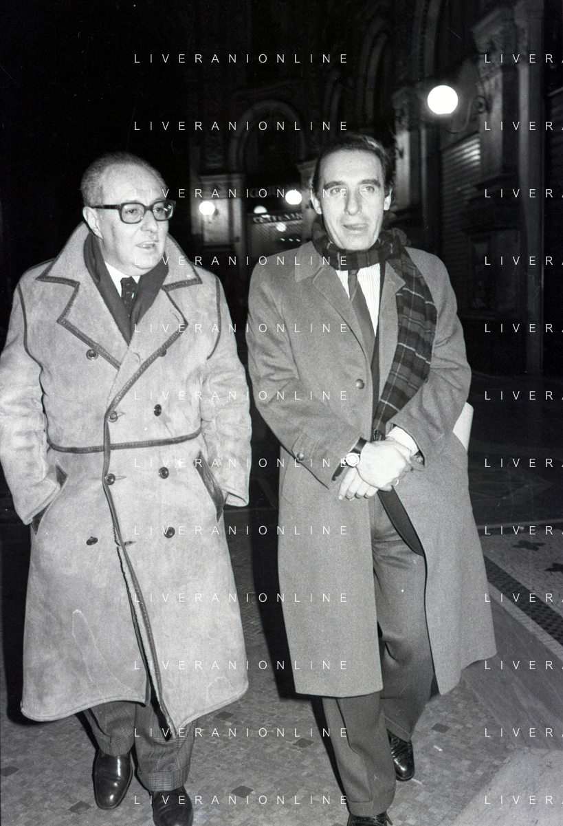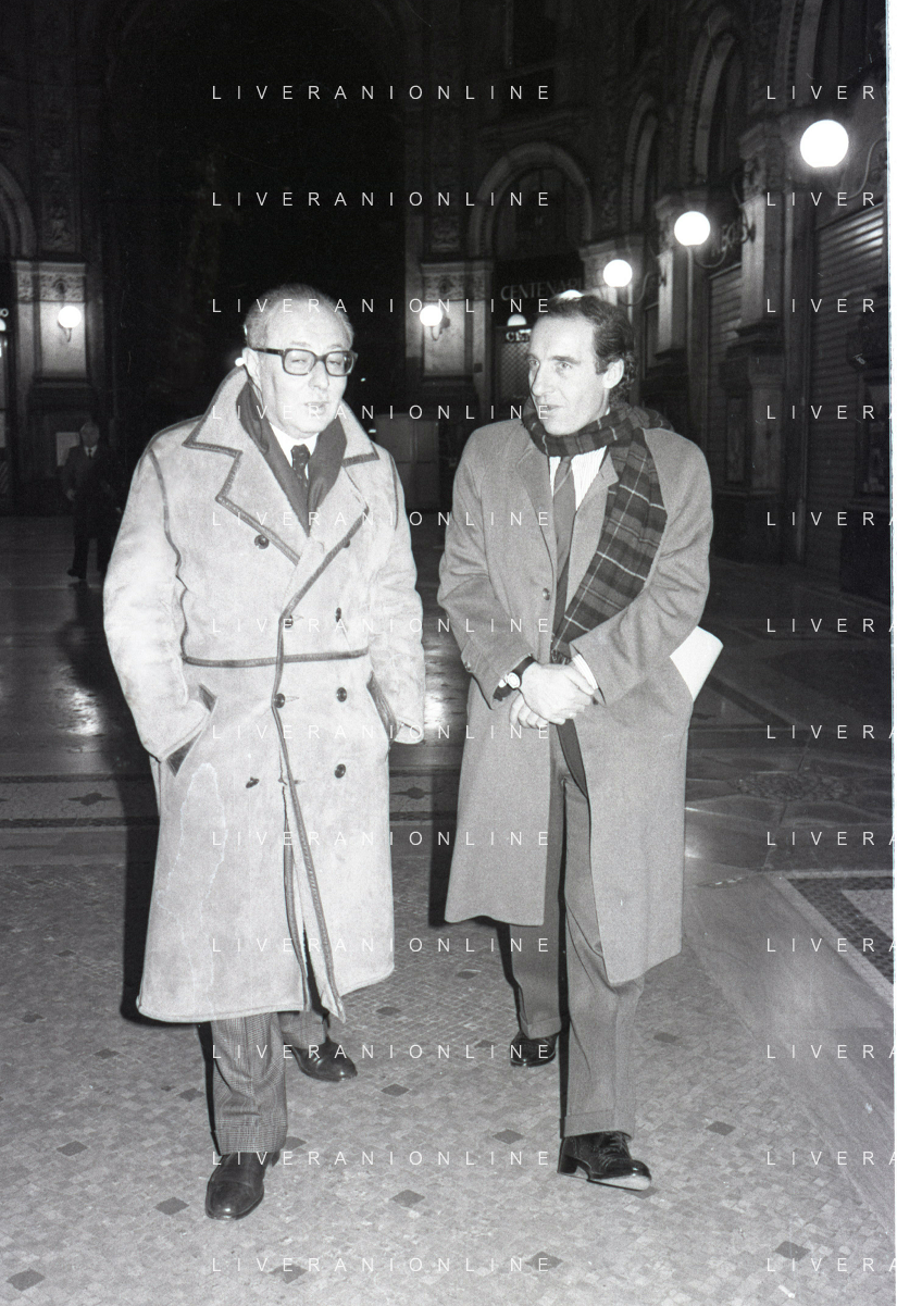 NEG- RETROSPETTIVA PAOLO PILLITTERI SINDACO DI MILANO E POLITICO PARTITO SOCIALISTA ITALIANO NELLA FOTO PAOLO PILLITTERI SINDACO DI MILANO NELL'ANNO 1987 CON ATTILIO SCHEMMARI ASSESSORE AG ALDO LIVERANI SAS