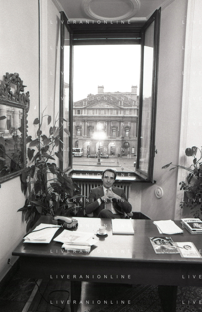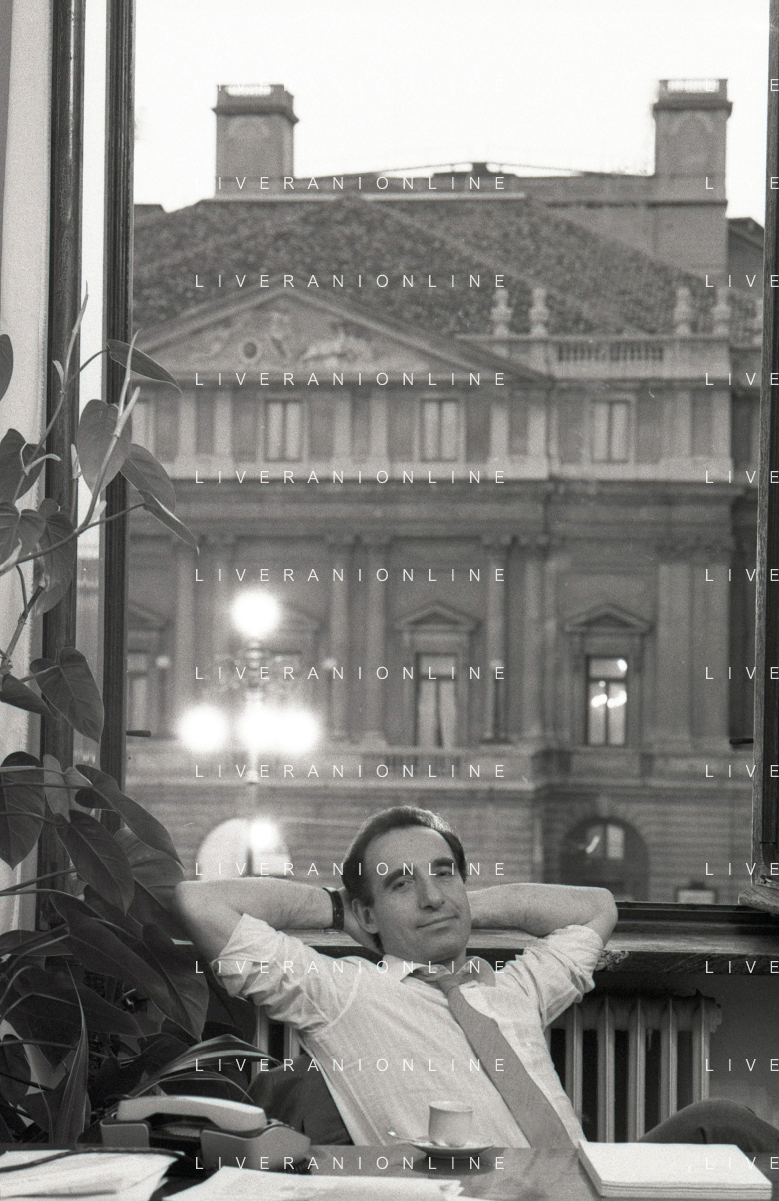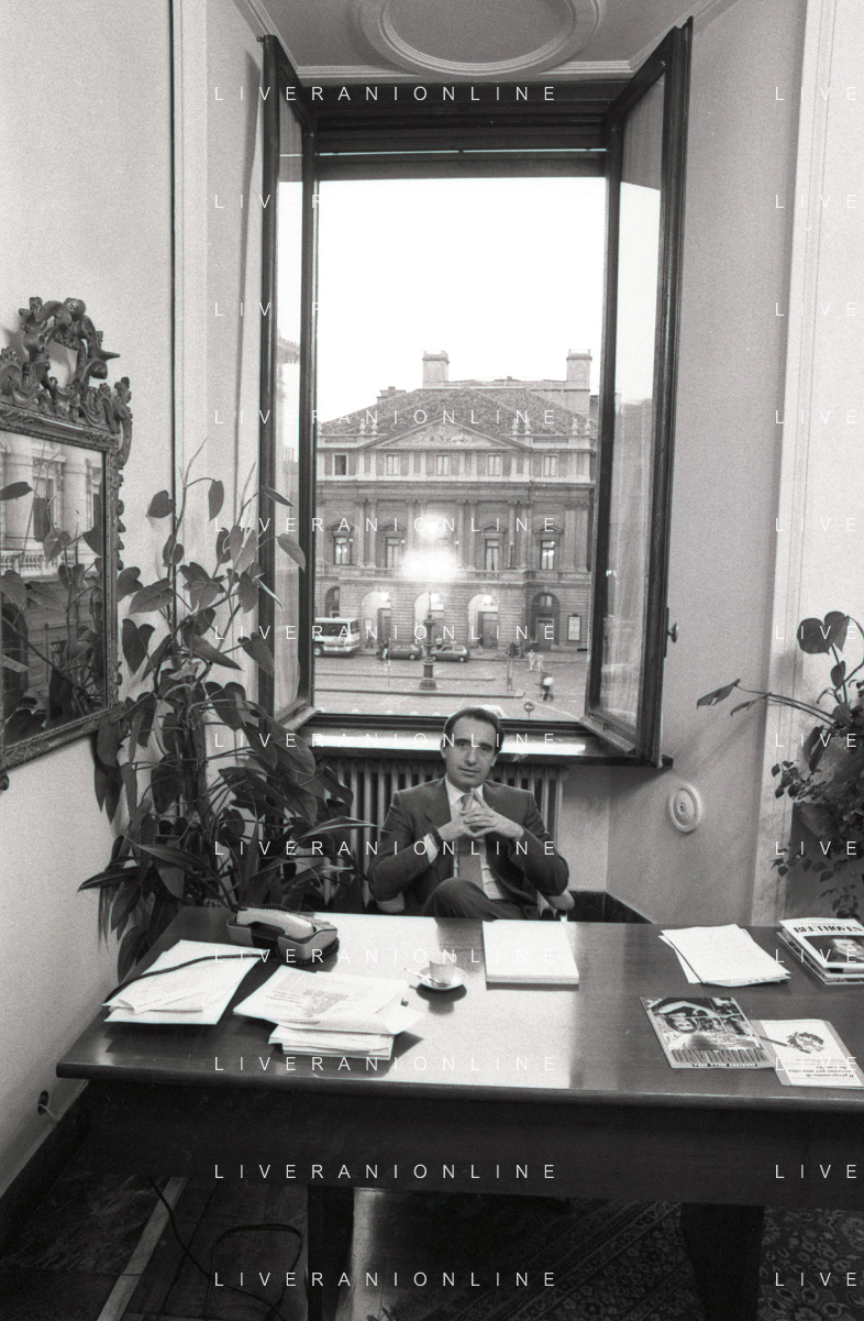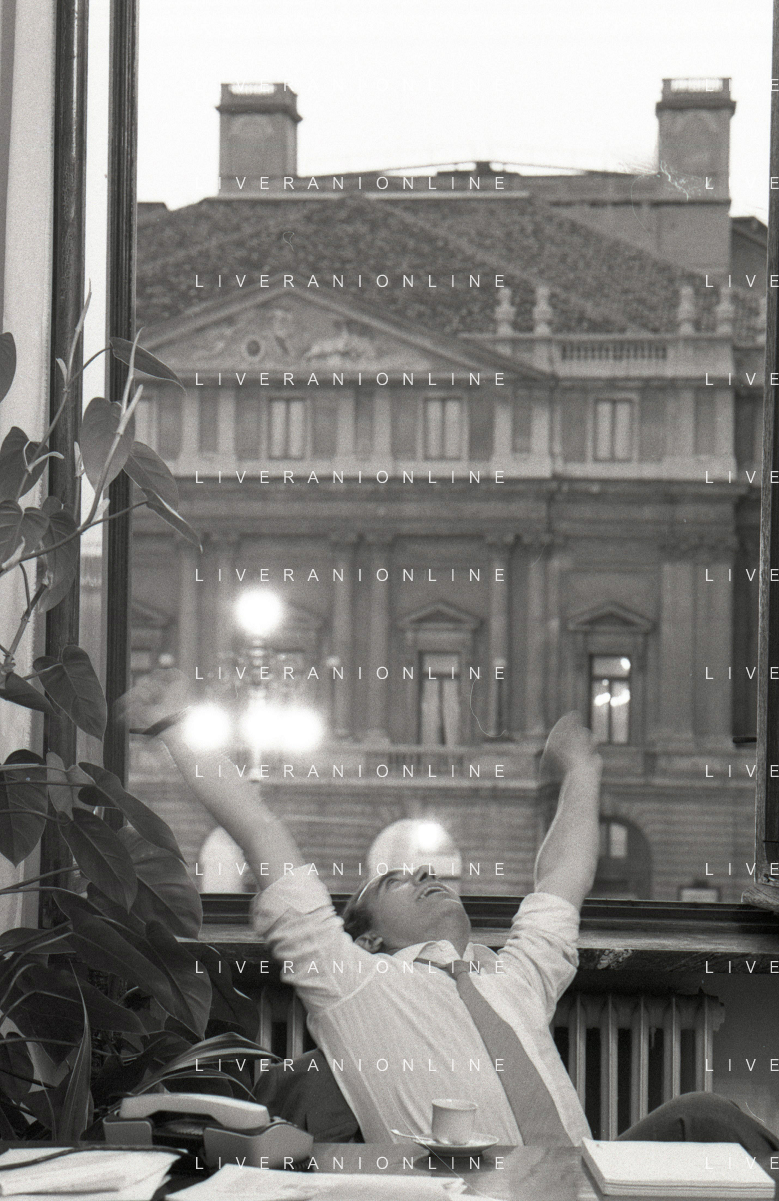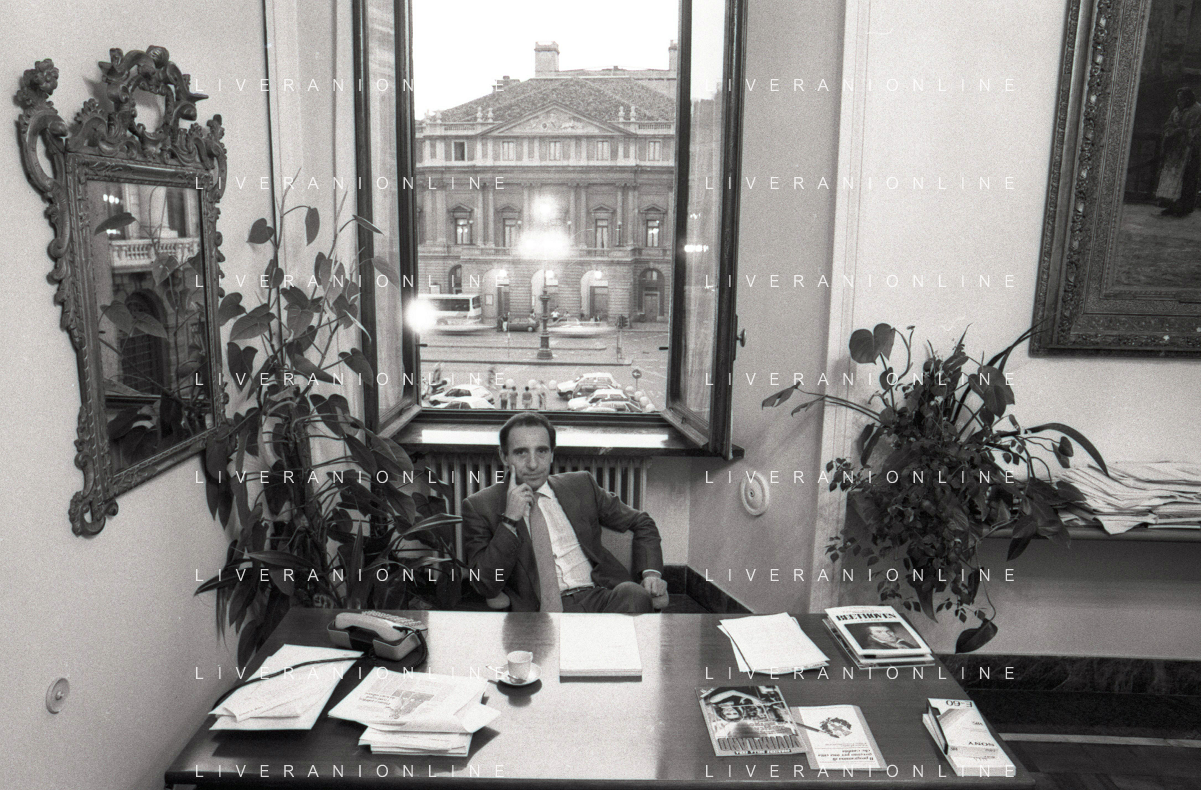 NEG- RETROSPETTIVA PAOLO PILLITTERI SINDACO DI MILANO E POLITICO PARTITO SOCIALISTA ITALIANO NELLA FOTO PAOLO PILLITTERI SINDACO DI MILANO NELL'ANNO 1987 A PALAZZO MARINO MILANO AG ALDO LIVERANI SAS