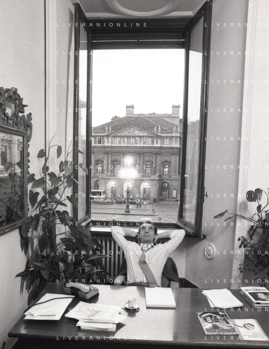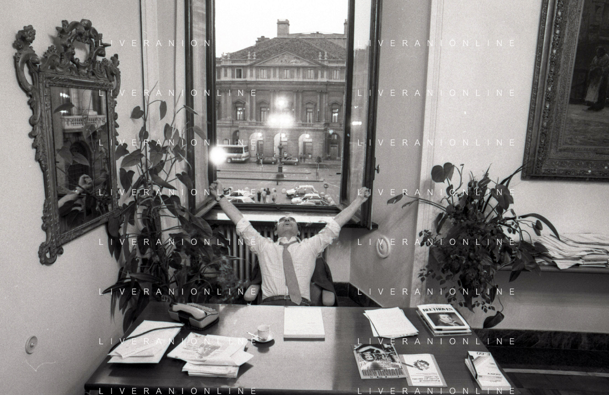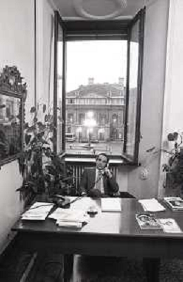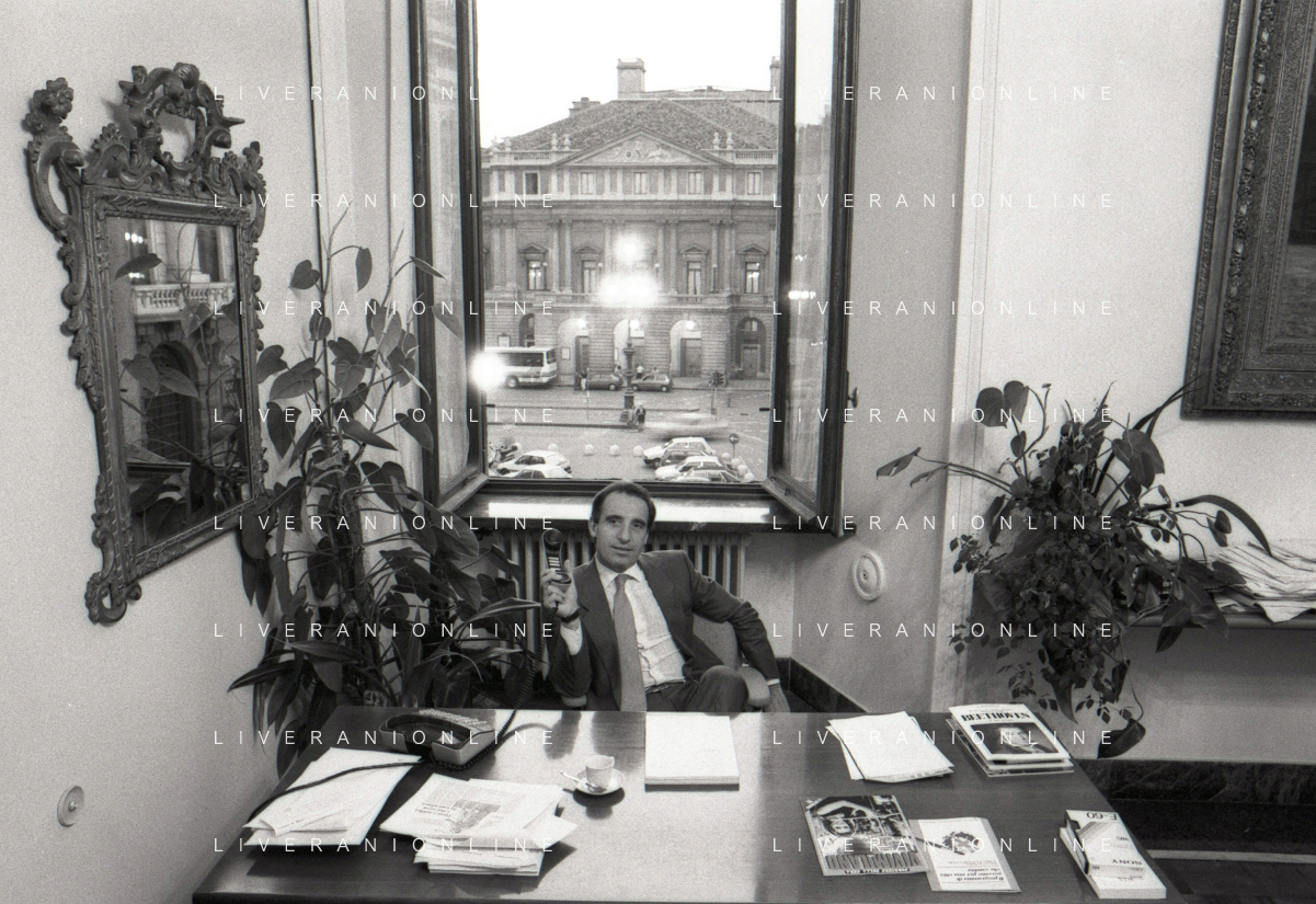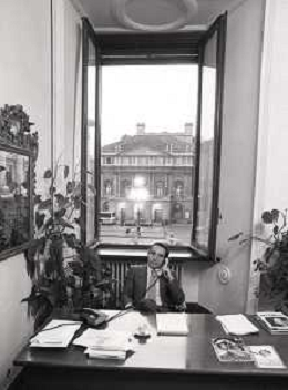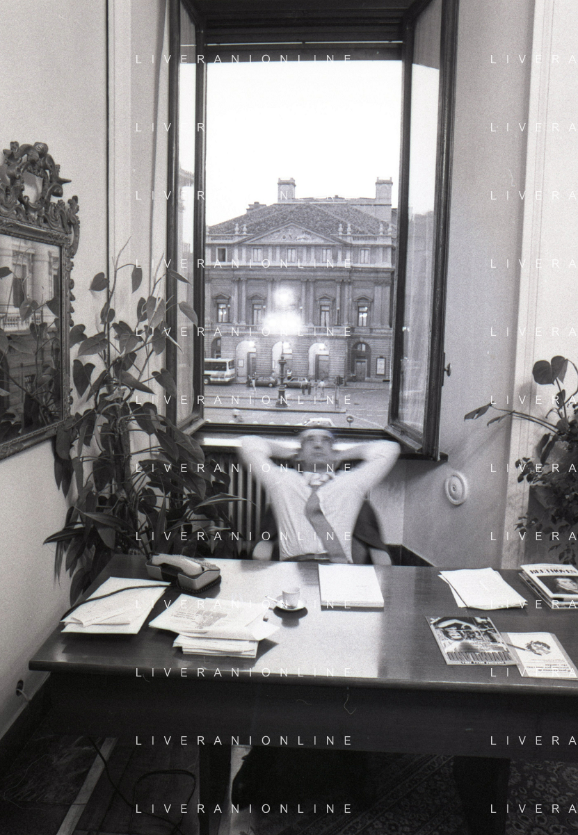 NEG- RETROSPETTIVA PAOLO PILLITTERI SINDACO DI MILANO E POLITICO PARTITO SOCIALISTA ITALIANO NELLA FOTO PAOLO PILLITTERI SINDACO DI MILANO NELL'ANNO 1987 A PALAZZO MARINO MILANO AG ALDO LIVERANI SAS