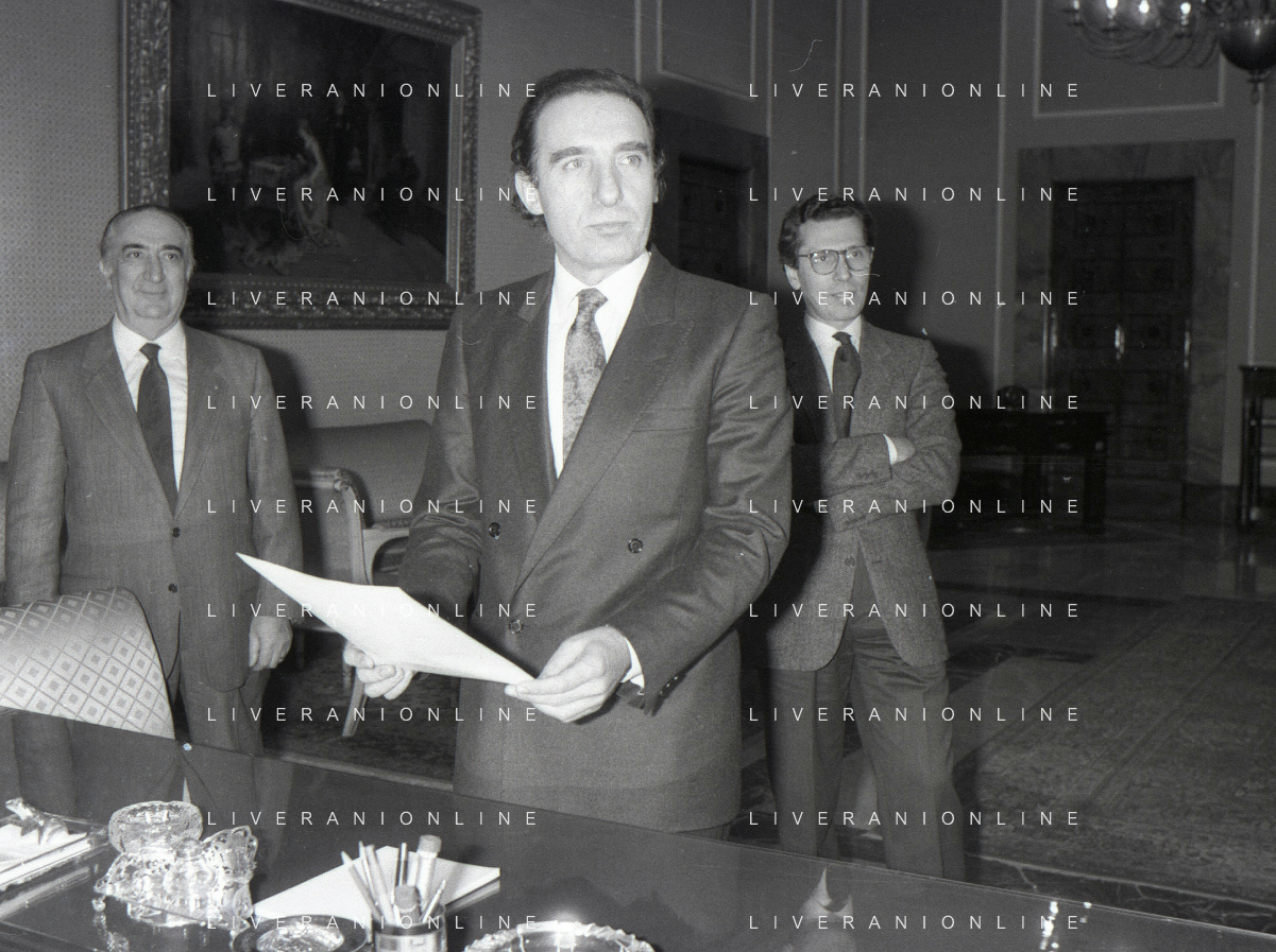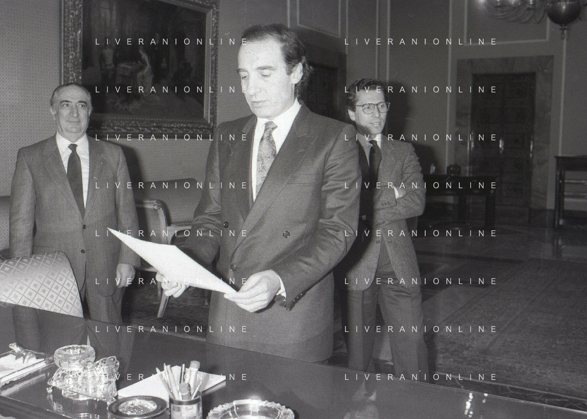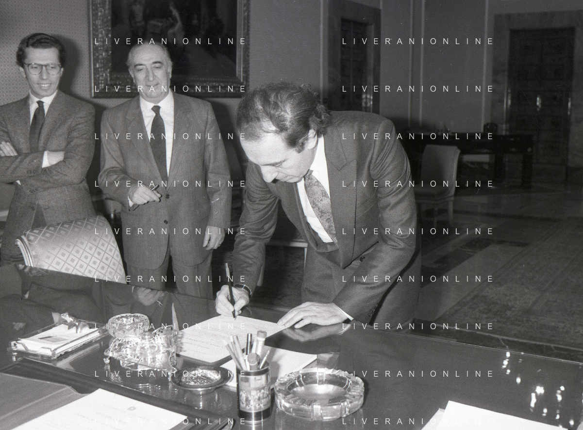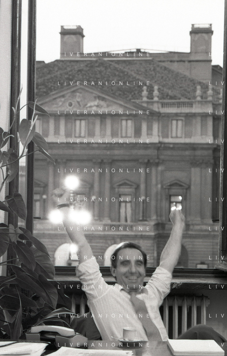 NEG- RETROSPETTIVA PAOLO PILLITTERI SINDACO DI MILANO E POLITICO PARTITO SOCIALISTA ITALIANO NELLA FOTO PAOLO PILLITTERI SINDACO DI MILANO NELL'ANNO 1987 A PALAZZO MARINO MILANO AG ALDO LIVERANI SAS