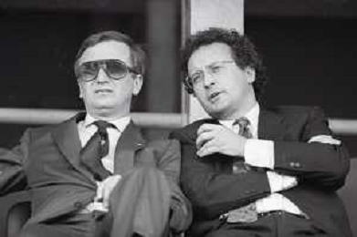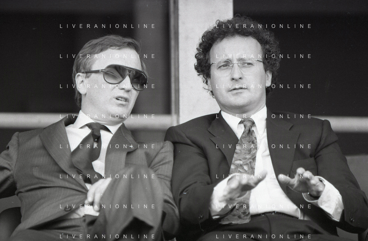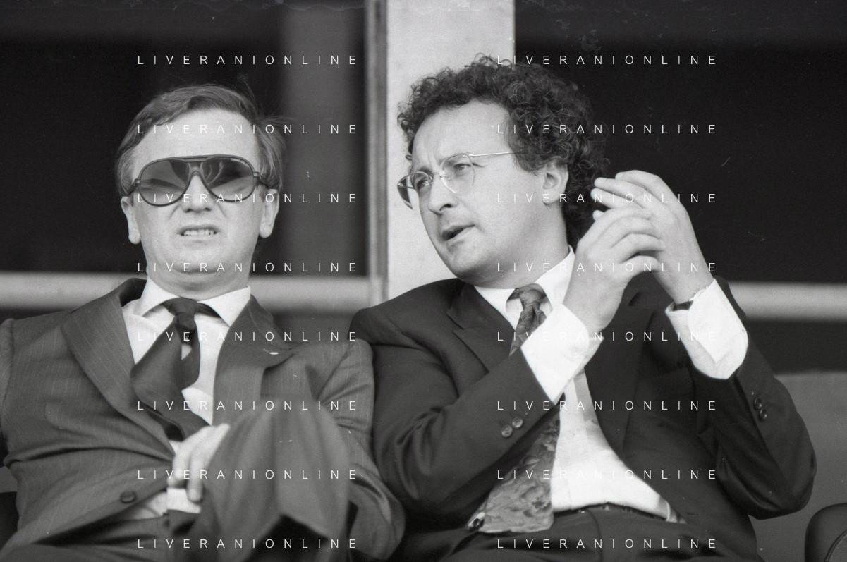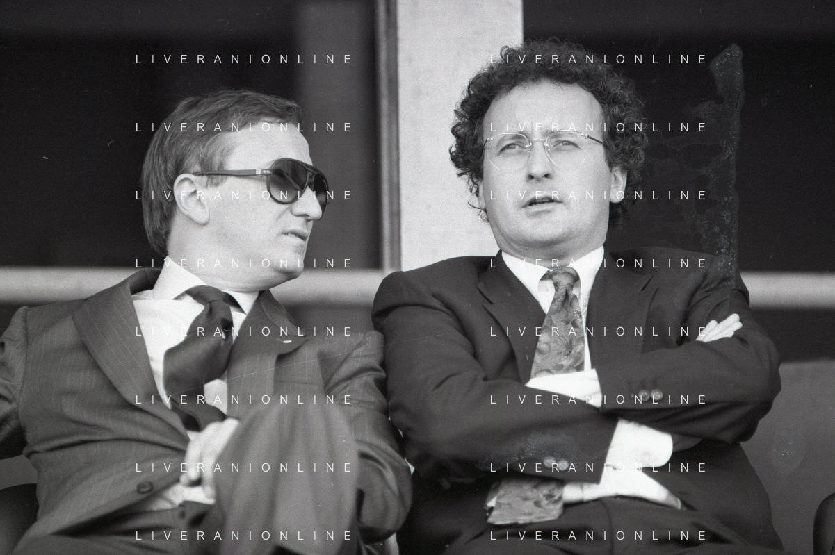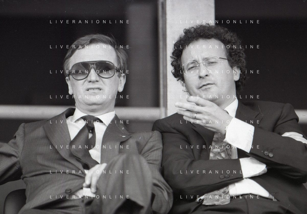 NEG-RETROSPETTIVA GIAN MAURO BORSANO PRESIDENTE TORINO CALCIO NELLA FOTO GIAN MAURO BORSANO NELL'ANNO 1990-1991 PRESIDENTE DEL TORINO CALCIO CON LUCIANO MOGGI AG ALDO LIVERANI SAS