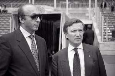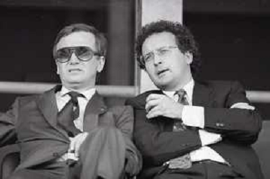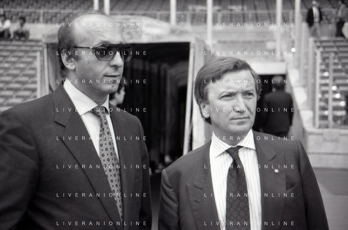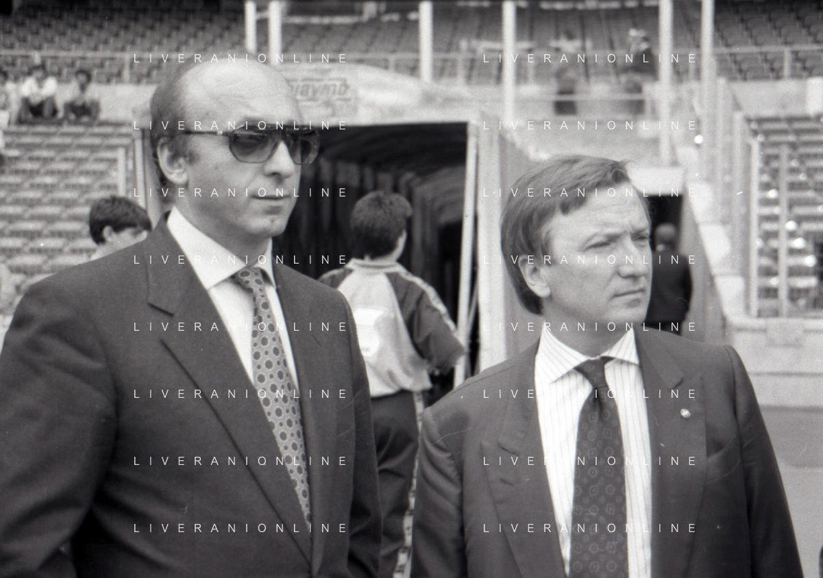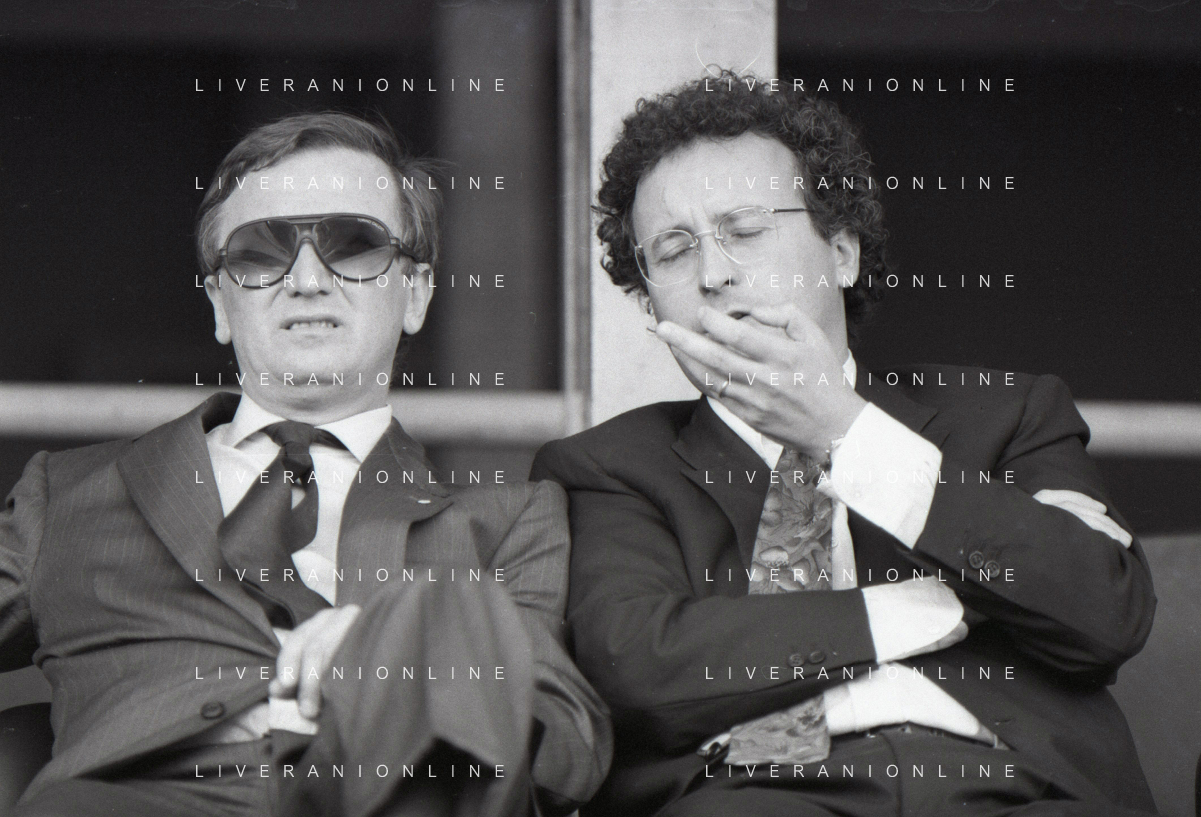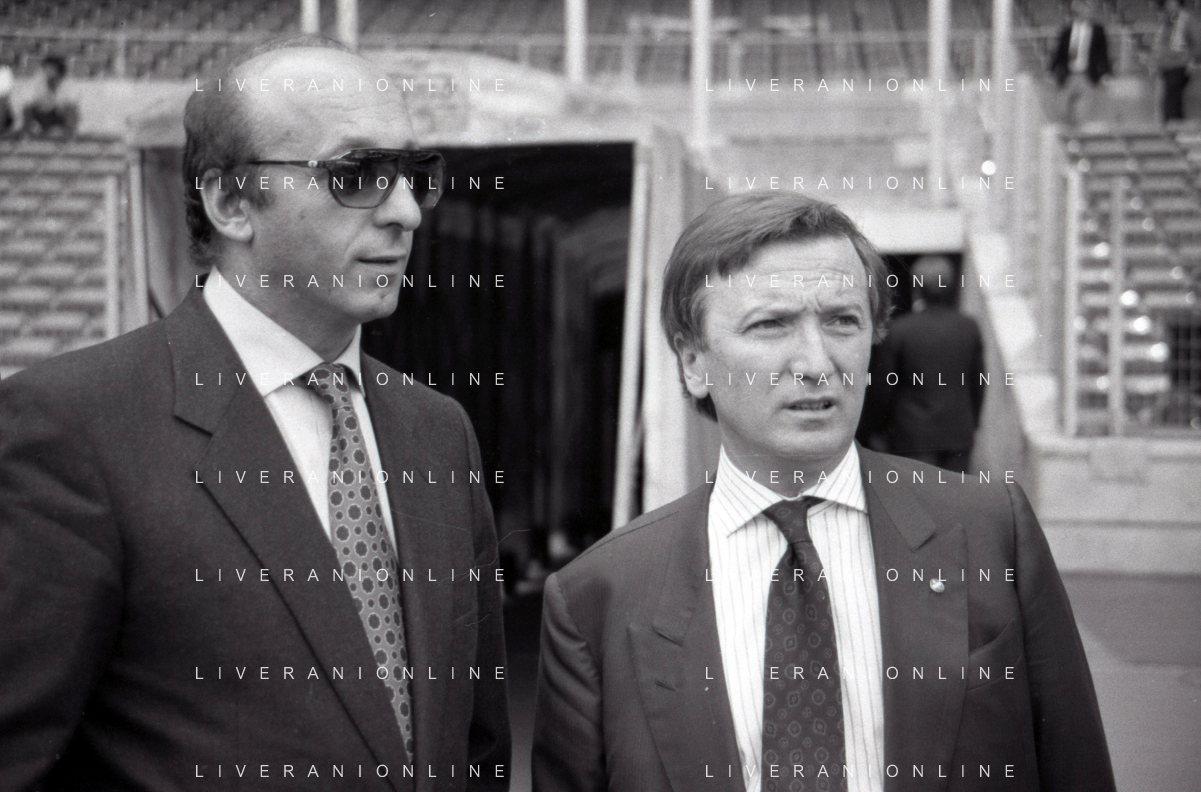 NEG-RETROSPETTIVA GIAN MAURO BORSANO PRESIDENTE TORINO CALCIO NELLA FOTO GIAN MAURO BORSANO NELL'ANNO 1990-1991 PRESIDENTE DEL TORINO CALCIO CON LUCIANO MOGGI AG ALDO LIVERANI SAS