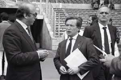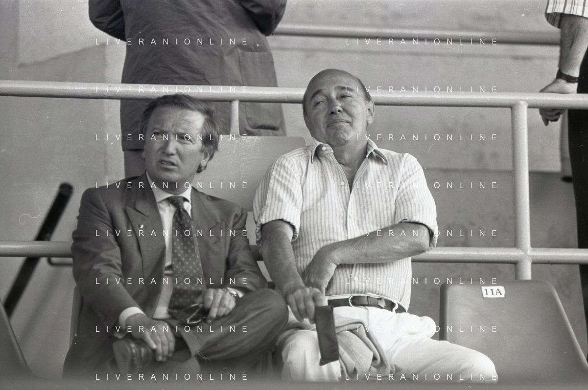 NEG-RETROSPETTIVA GIAN MAURO BORSANO PRESIDENTE TORINO CALCIO NELLA FOTO GIAN MAURO BORSANO NELL'ANNO 1990-1991 PRESIDENTE DEL TORINO CALCIO CON BETTINO CRAXI AG ALDO LIVERANI SAS