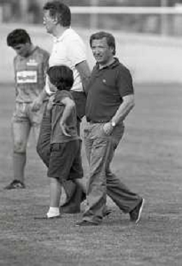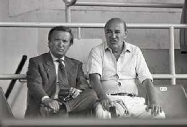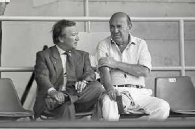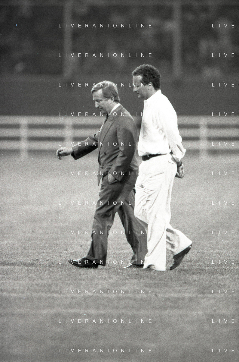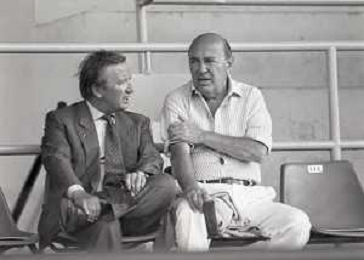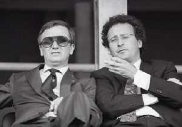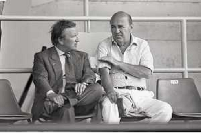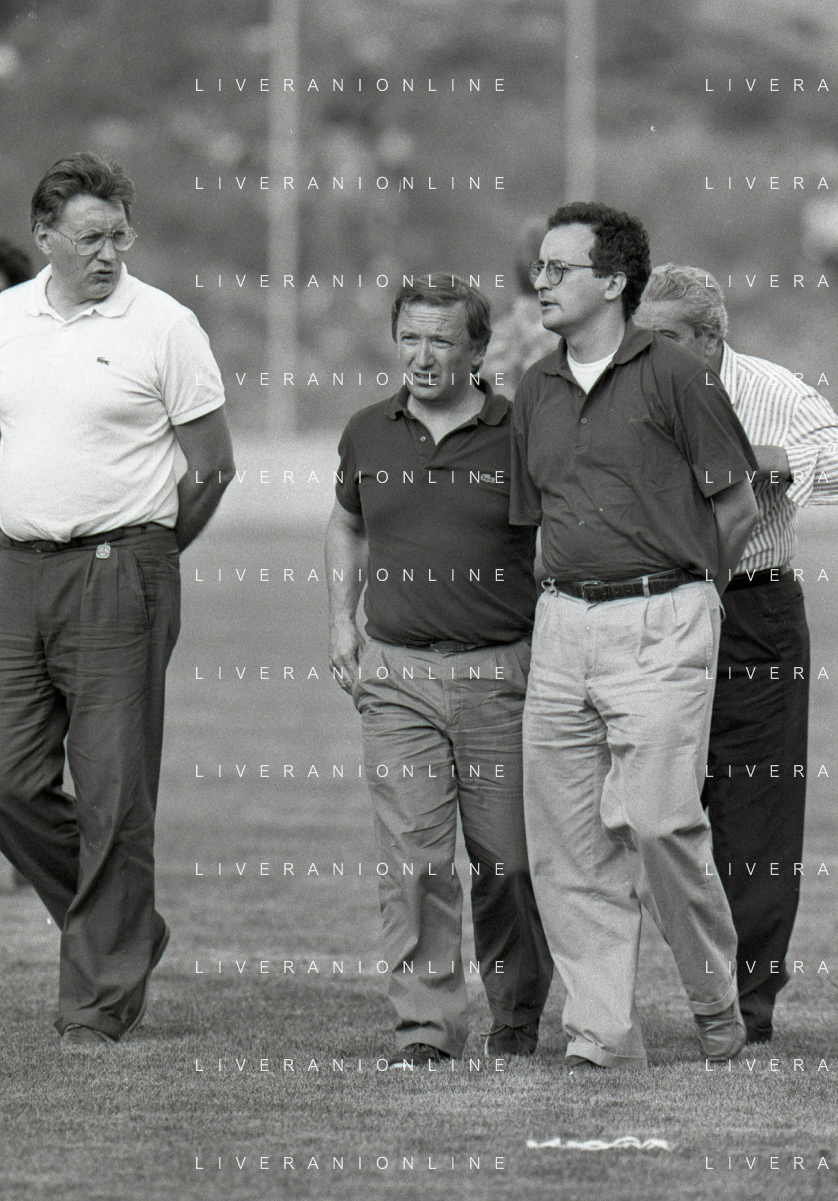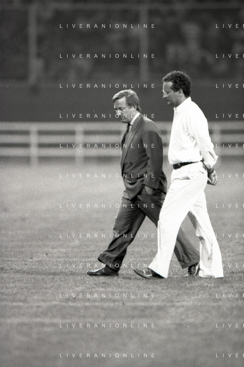 NEG-RETROSPETTIVA GIAN MAURO BORSANO PRESIDENTE TORINO CALCIO NELLA FOTO GIAN MAURO BORSANO NELL'ANNO 1990-1991 PRESIDENTE DEL TORINO CALCIO CON MEILIANO MONDONICO AG ALDO LIVERANI SAS
